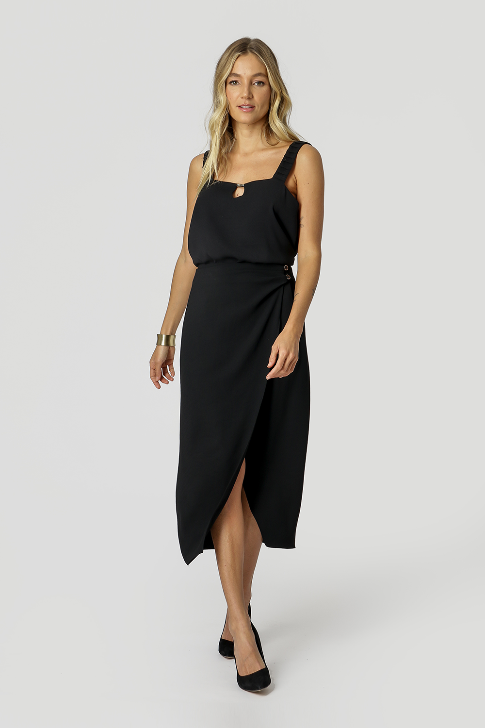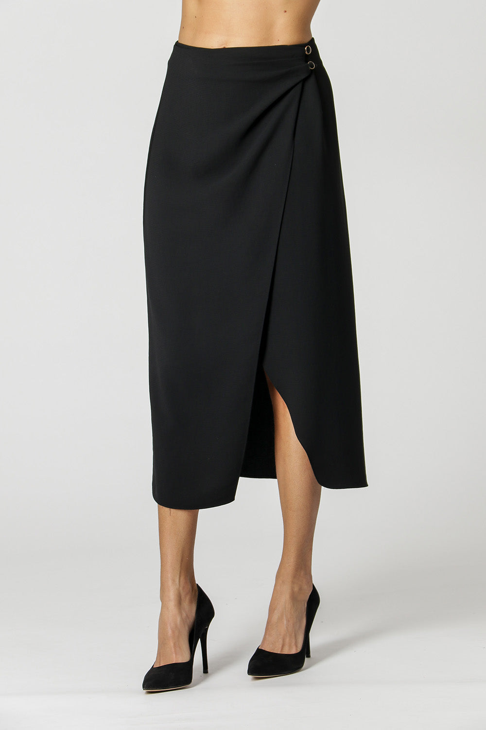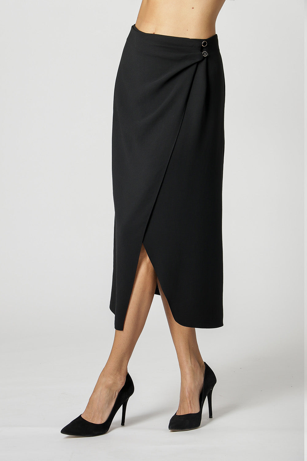Falda midi cruzada con pliegues en la parte delantera, confeccionada en crepe. ¡Una pieza elegante para que la lleves sin miedo!