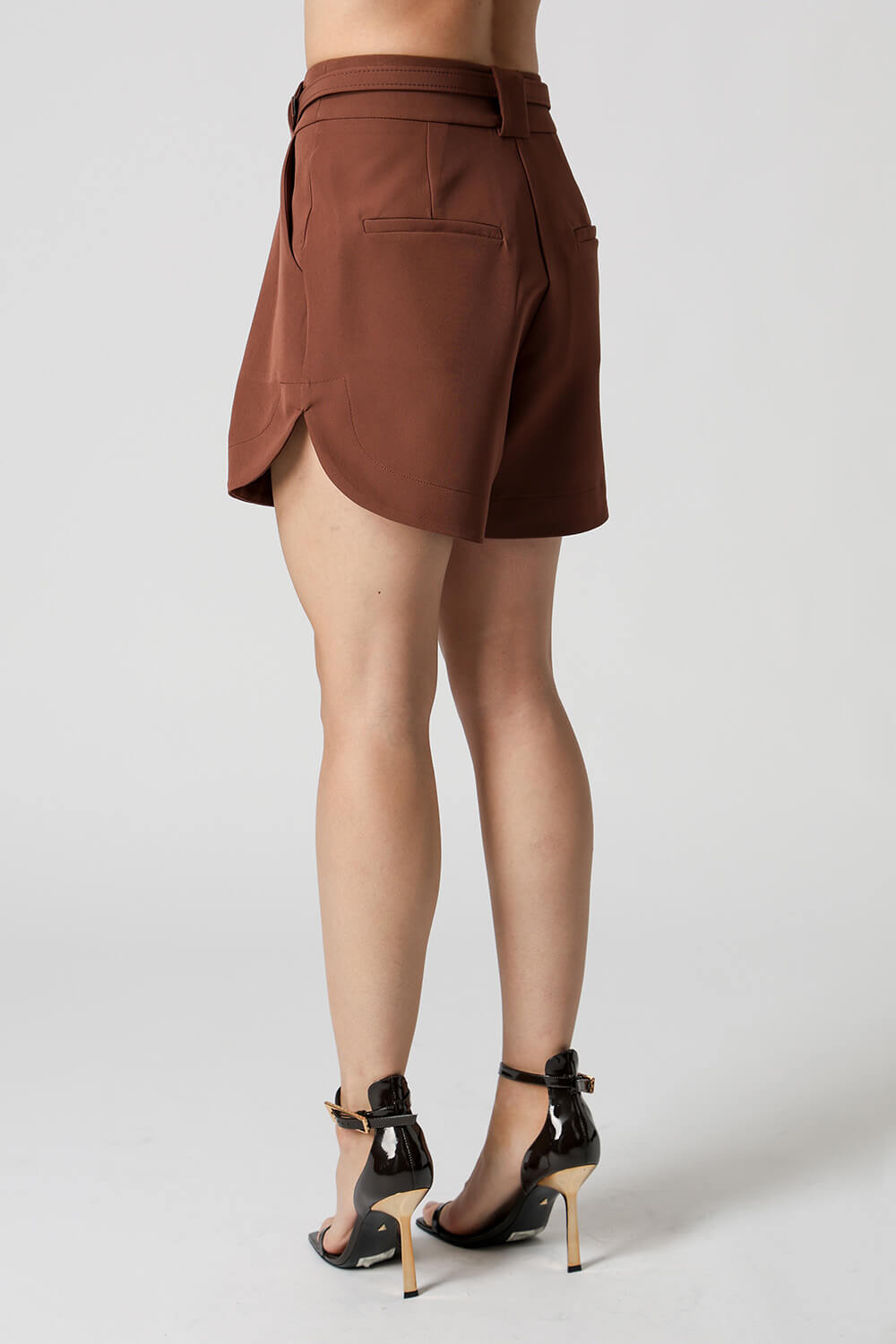 Shorts de alfaiataria moderno com bolsos faca frontais, passantes largos e barra arredondada. Possui bolso traseiro estilo alfaiataria e acabamento elegante em tecido estruturado. Ideal para compor looks sofisticados e confortáveis.