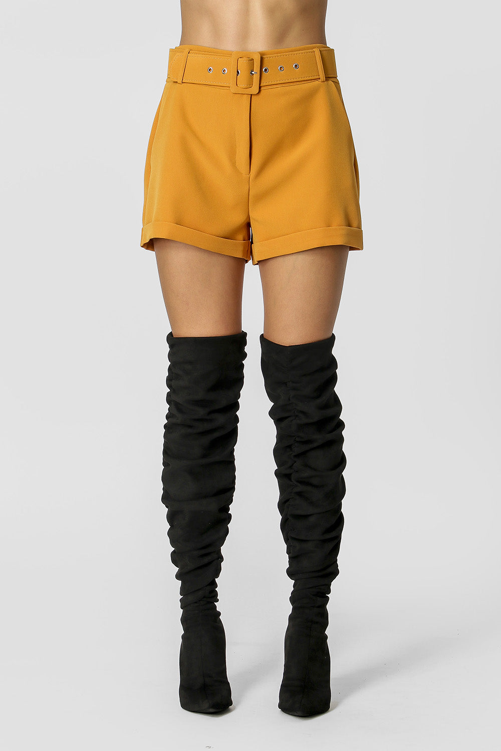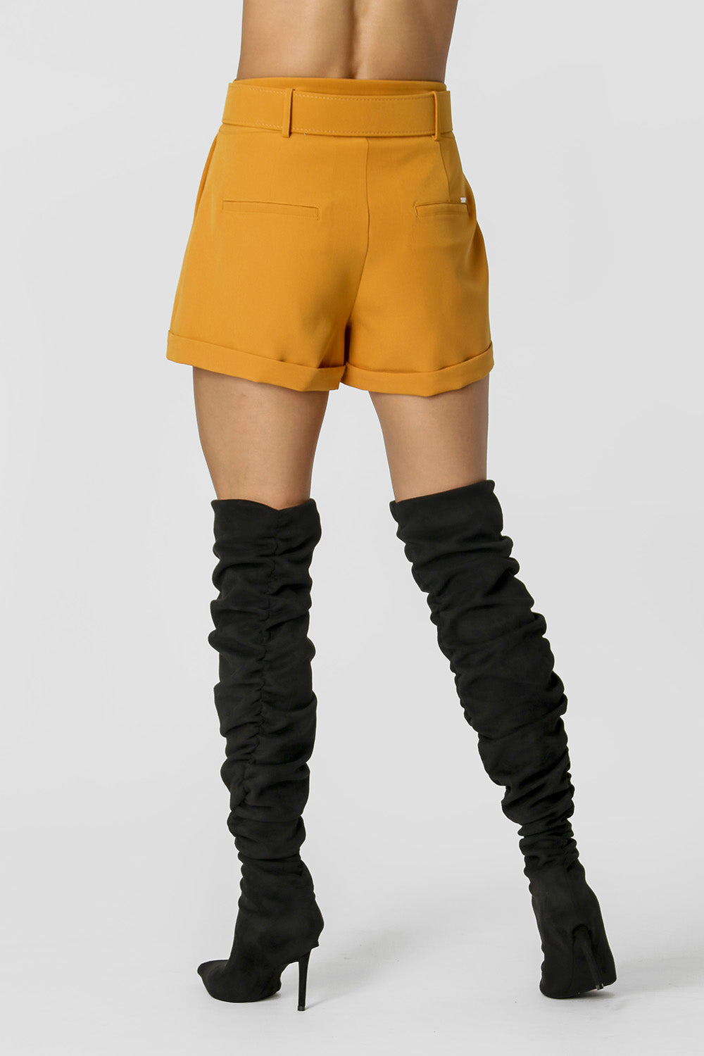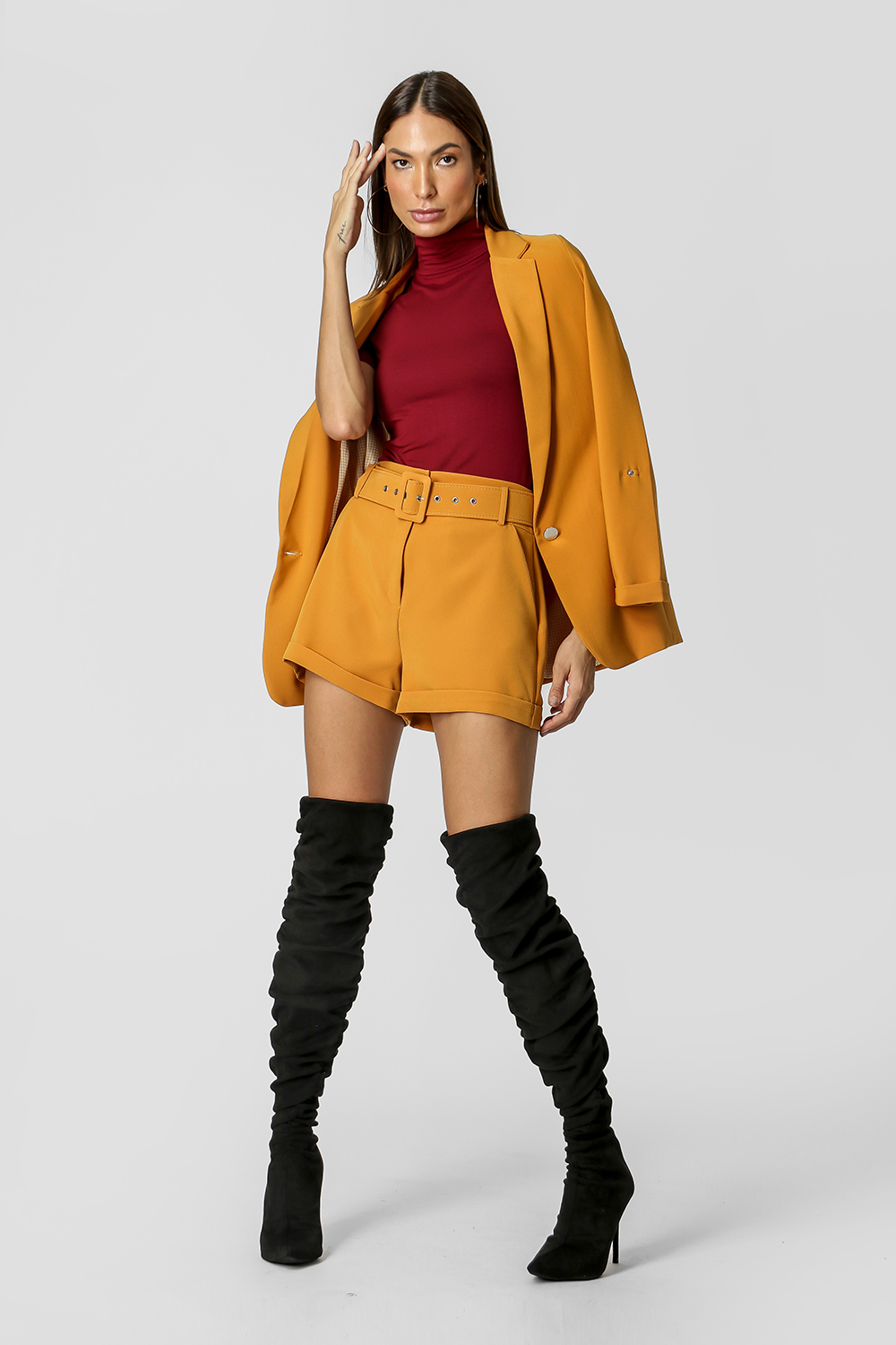Shorts en tejido sastre, con bajo italiano, trabillas para cinturón y bolsillo para navaja. Viene con un cinturón forrado con la misma tela. Ideal para looks de trabajo o eventos especiales.