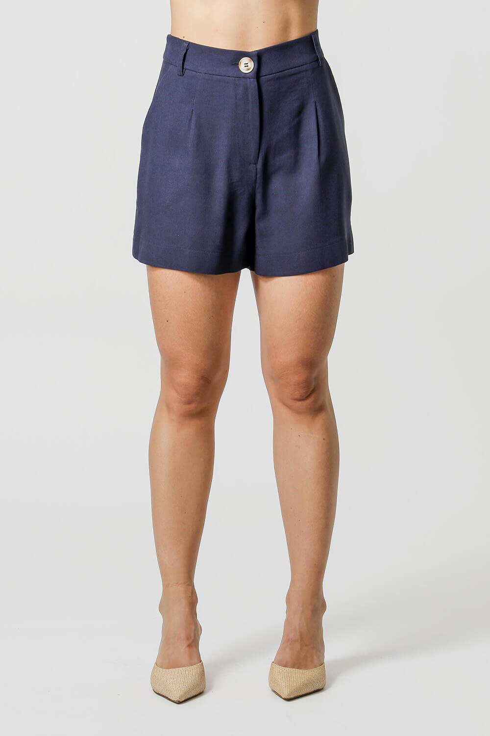 Pantalones cortos de lino con pliegues - AZUL MARINO
