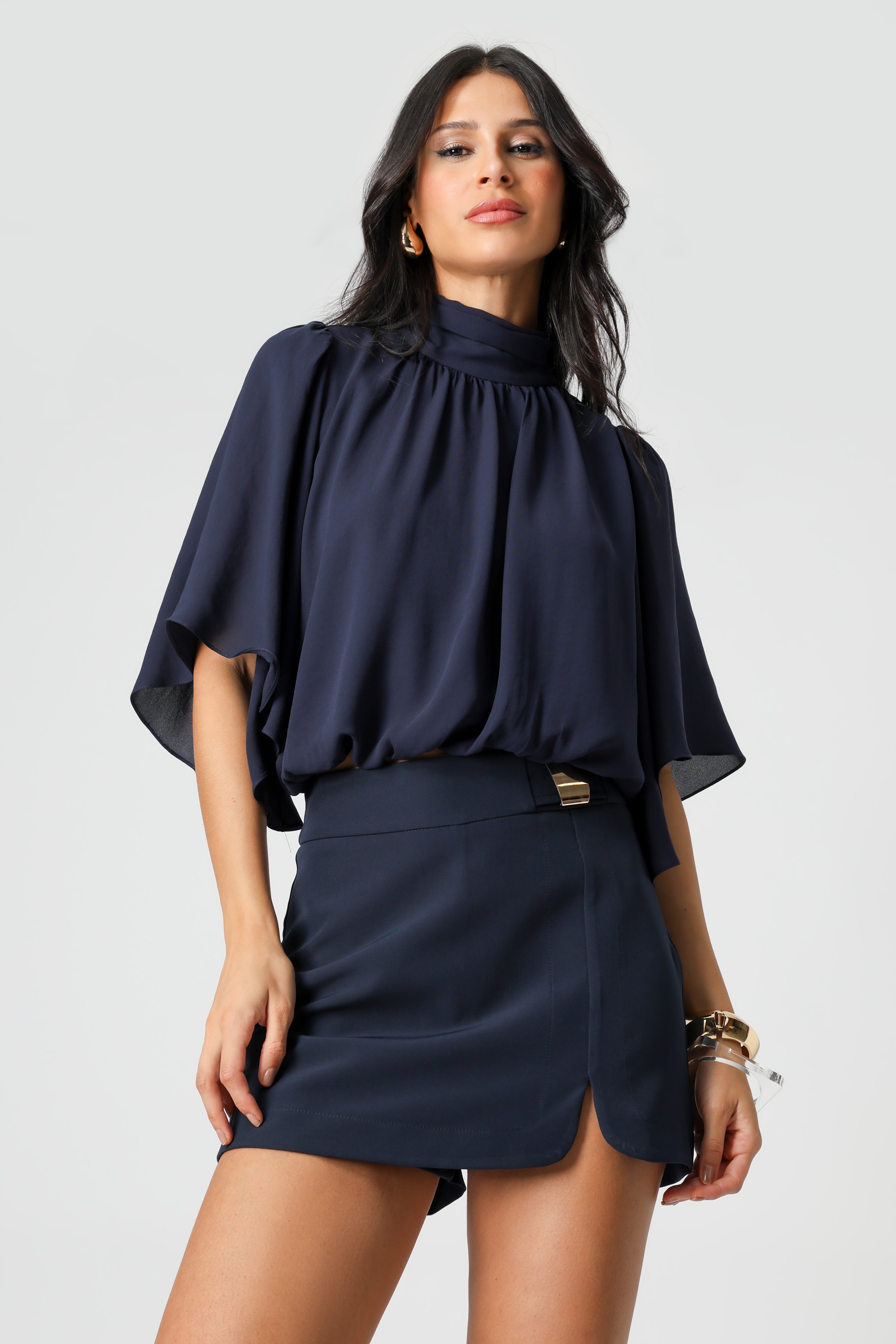 Los shorts de falda cruzada tienen un diseño versátil que combina el ajuste elegante de la sastrería con la practicidad de los shorts de falda, lo que garantiza comodidad y estilo. Resalta la hebilla dorada, que aporta un toque de exclusividad al look. Ideal para composiciones que van desde lo casual a lo más refinada.