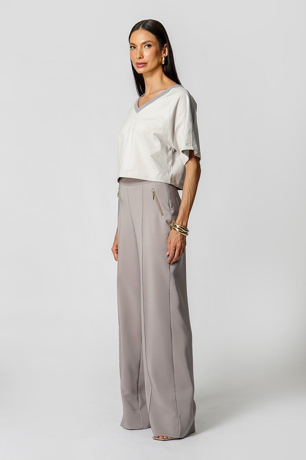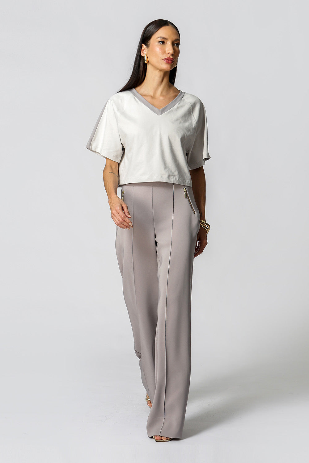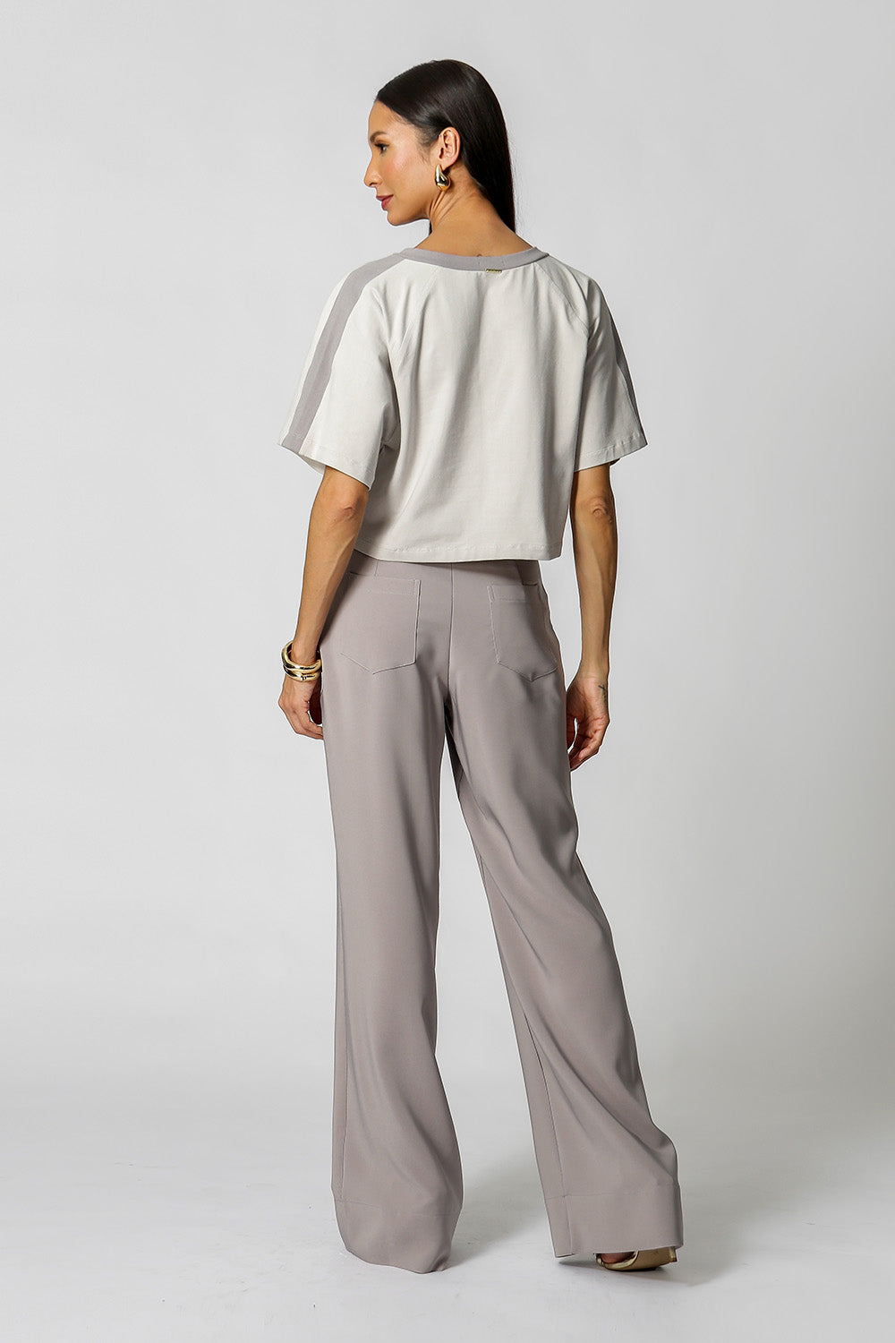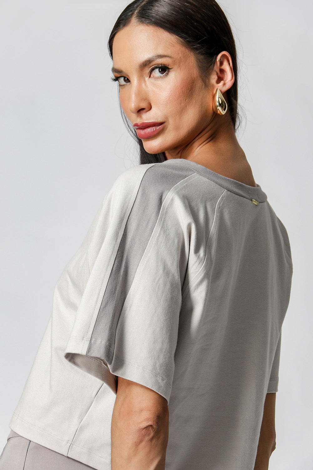 Camiseta con cuello en contraste. Preciosa pieza que puede utilizarse con composiciones sastre, entre otras, creando un look casual.