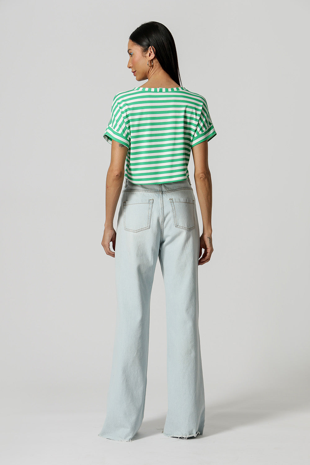 Camiseta cropped con bolsillo frontal confeccionada en tejido de rayas, una pieza casual súper práctica y cómoda.