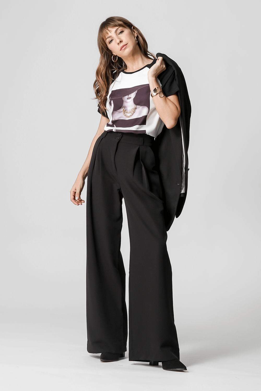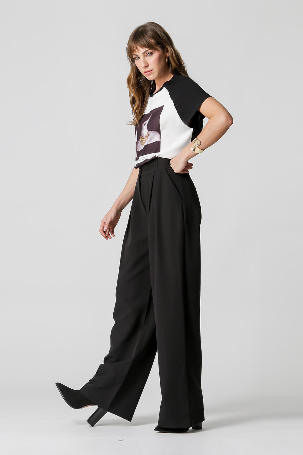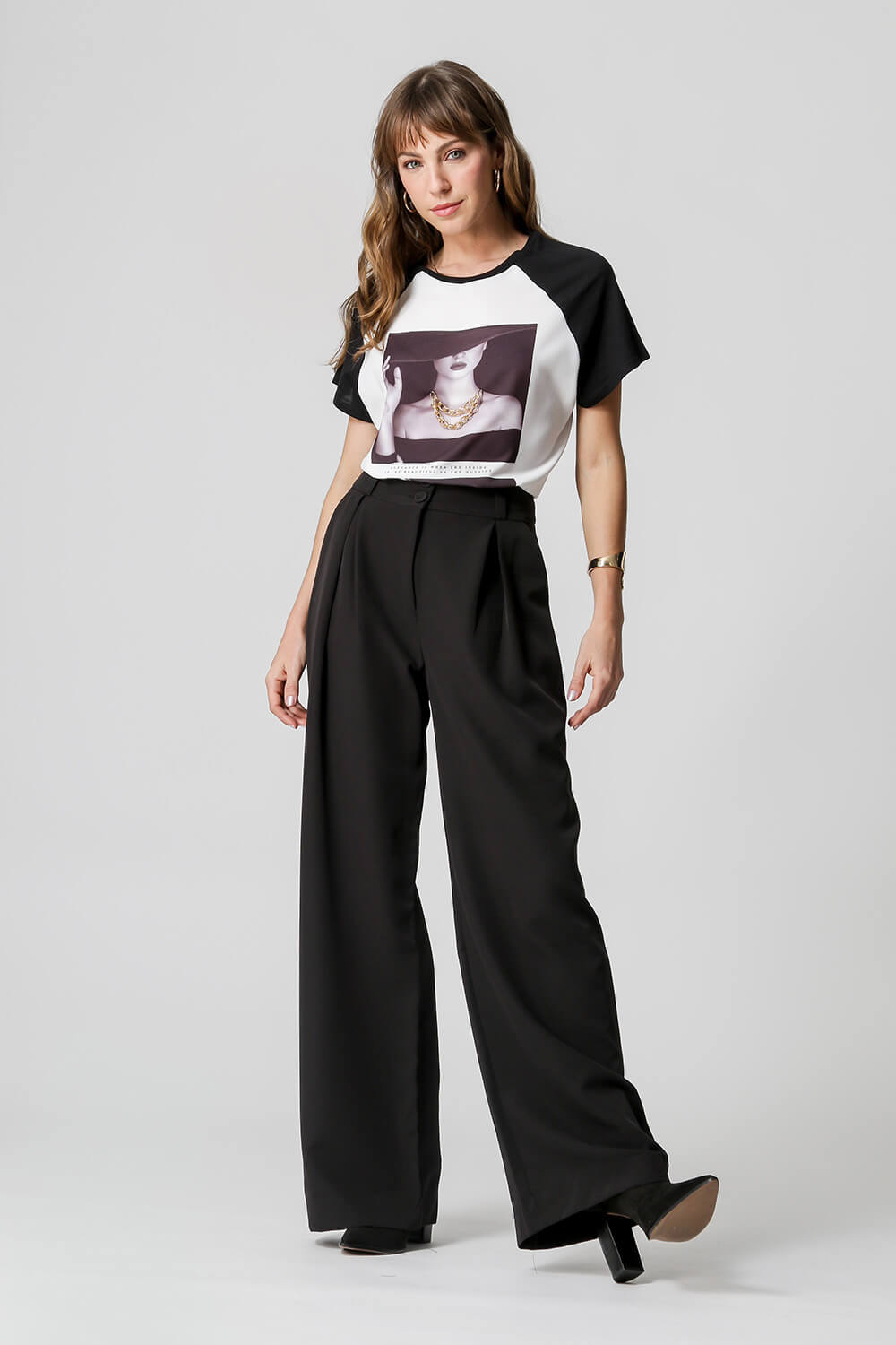 Camiseta de Manga Corta, con mezcla de tejidos, la parte delantera es en tejido twill crepe y la manga y espalda en malla ultrafina para mayor comodidad y buen ajuste. Ideal para looks casuales y relajados.