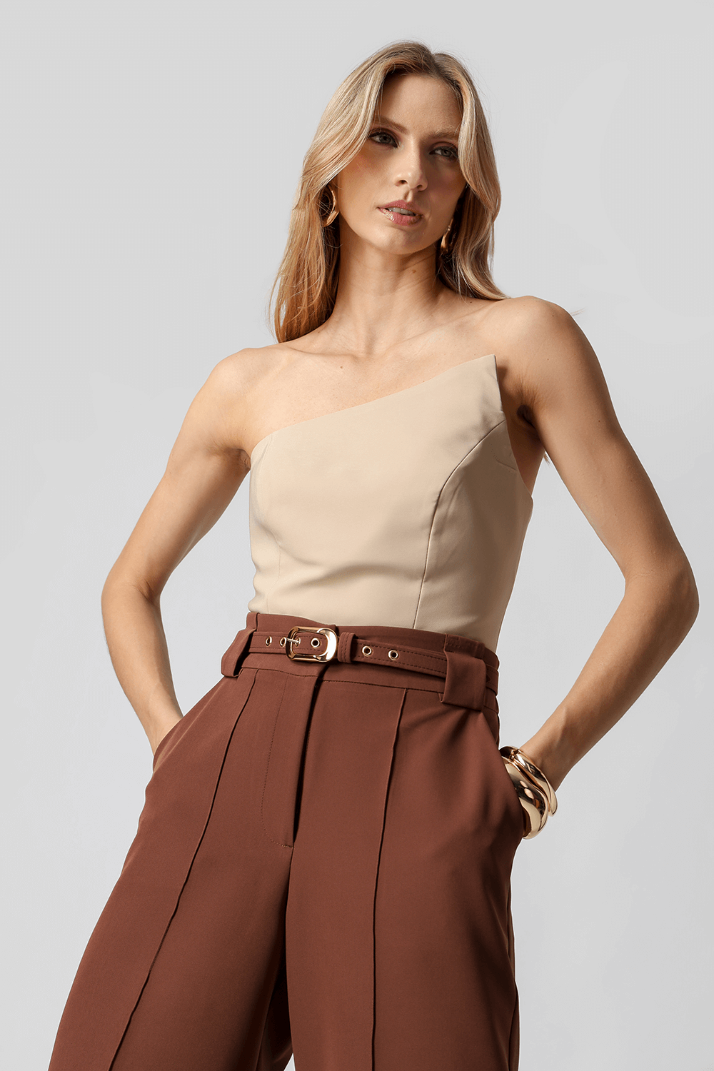 Top de alfaiataria assimétrico com zíper nas costas. Um modelo super atualizado e perfeito para compor vários looks night.