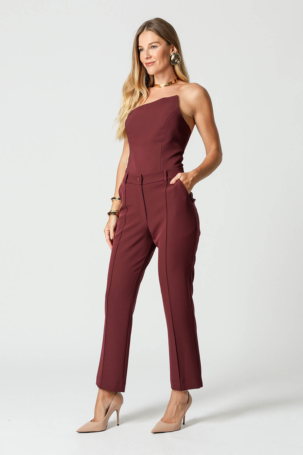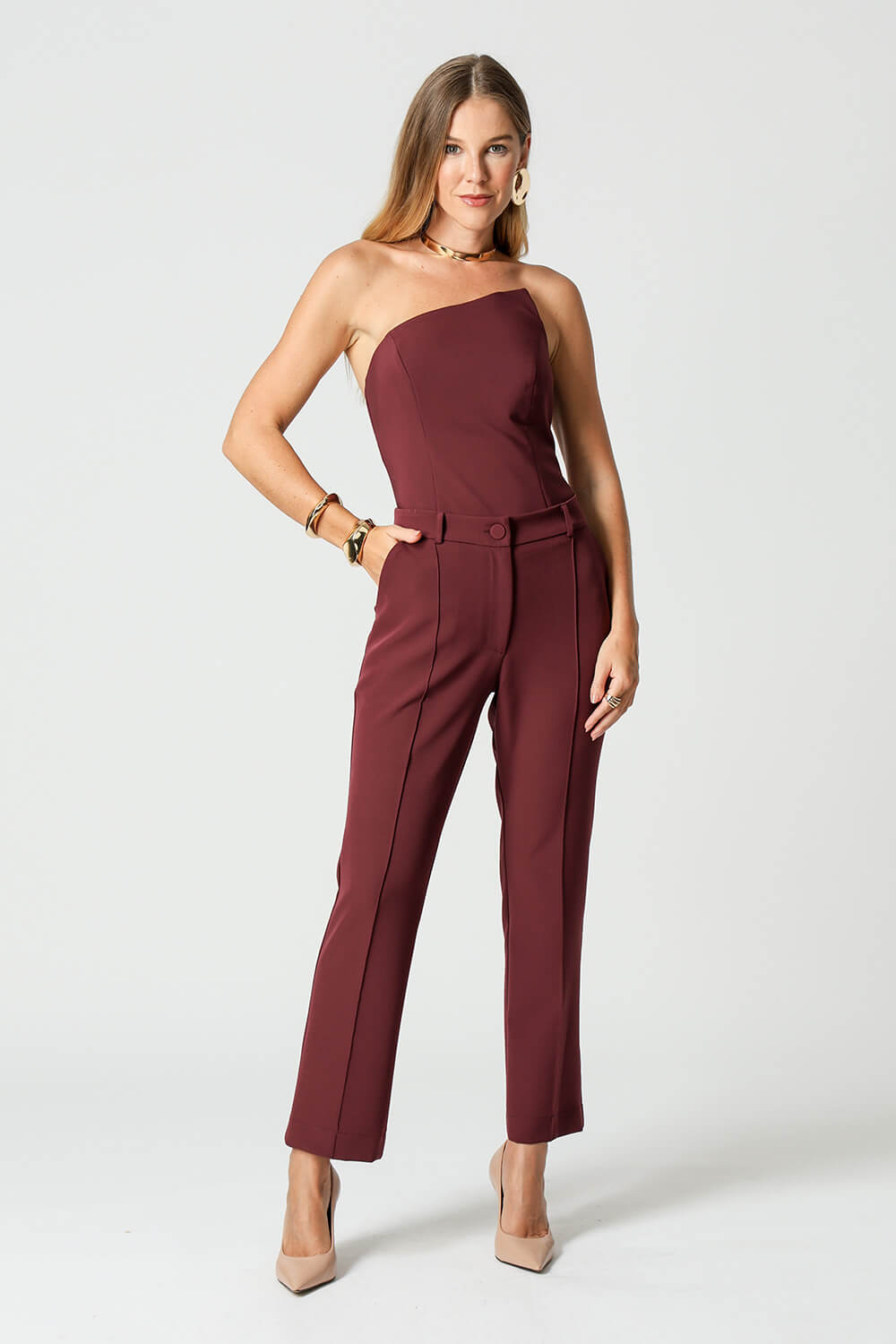 Top de alfaiataria assimétrico com zíper nas costas. Um modelo super atualizado e perfeito para compor vários looks night.