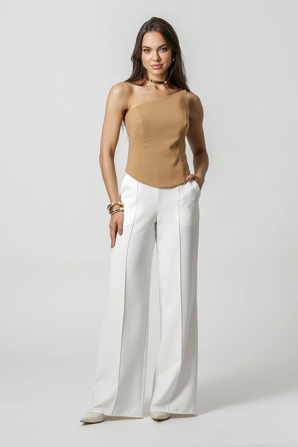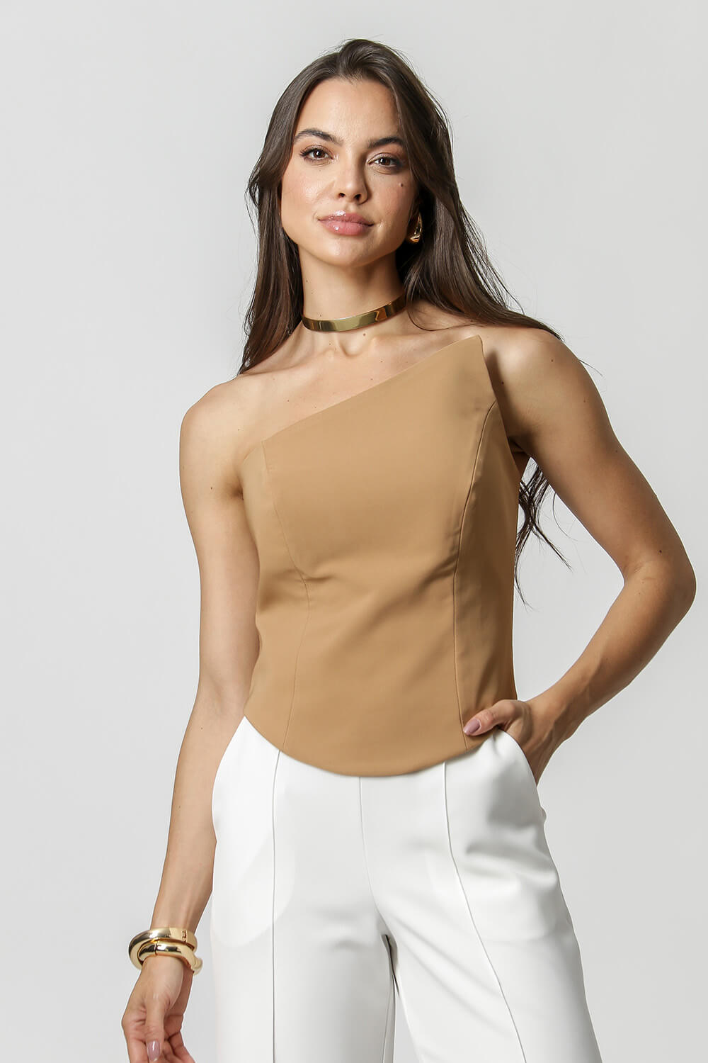Top entallado asimétrico con cremallera en la espalda. Un modelo súper actualizado, perfecto para crear diversos looks de noche.