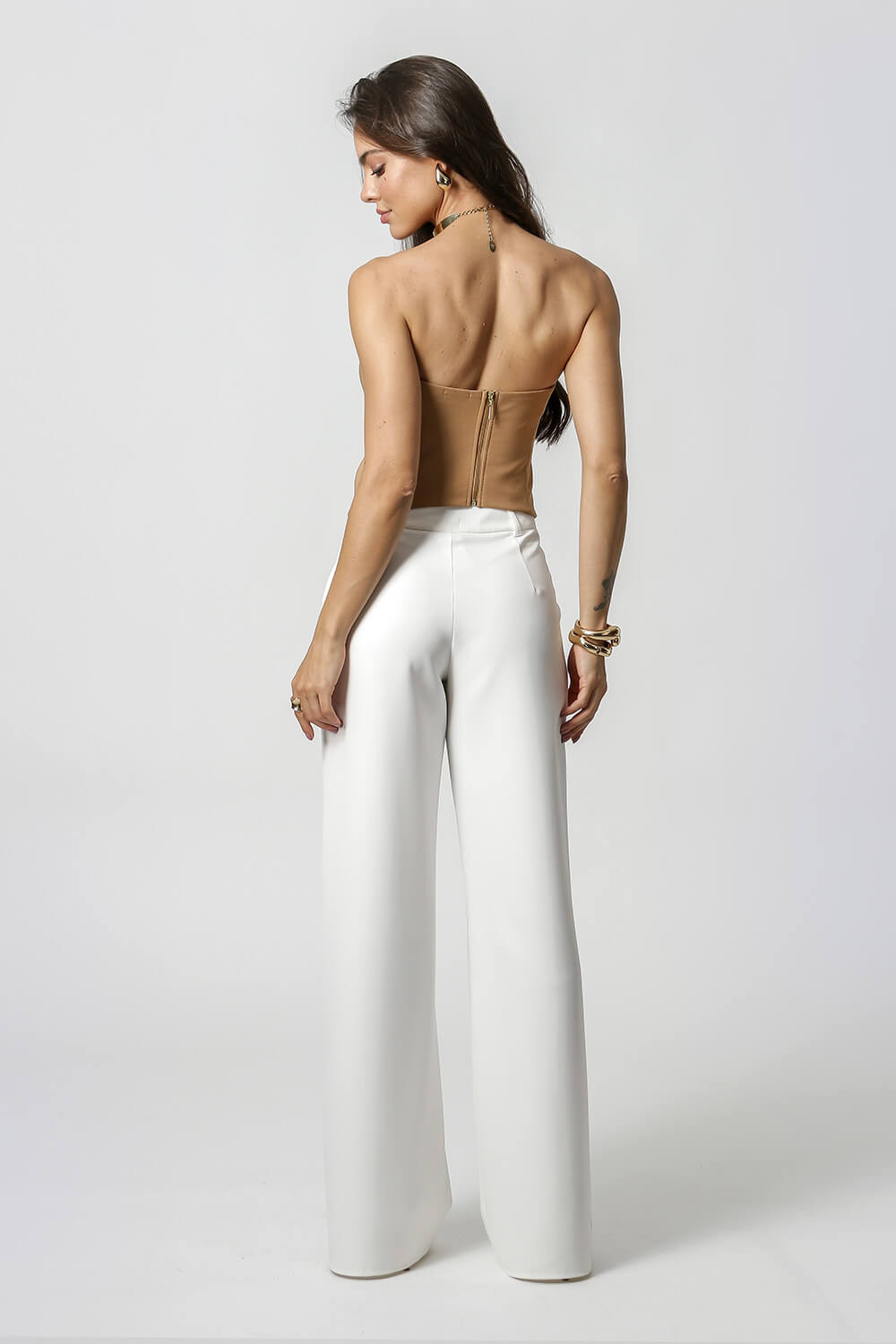 Pantalones minimalistas de pierna ancha - BLANCO ROJO Pantalones minimalistas de pierna ancha - BLANCO ROJO