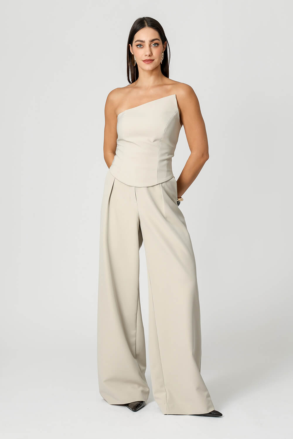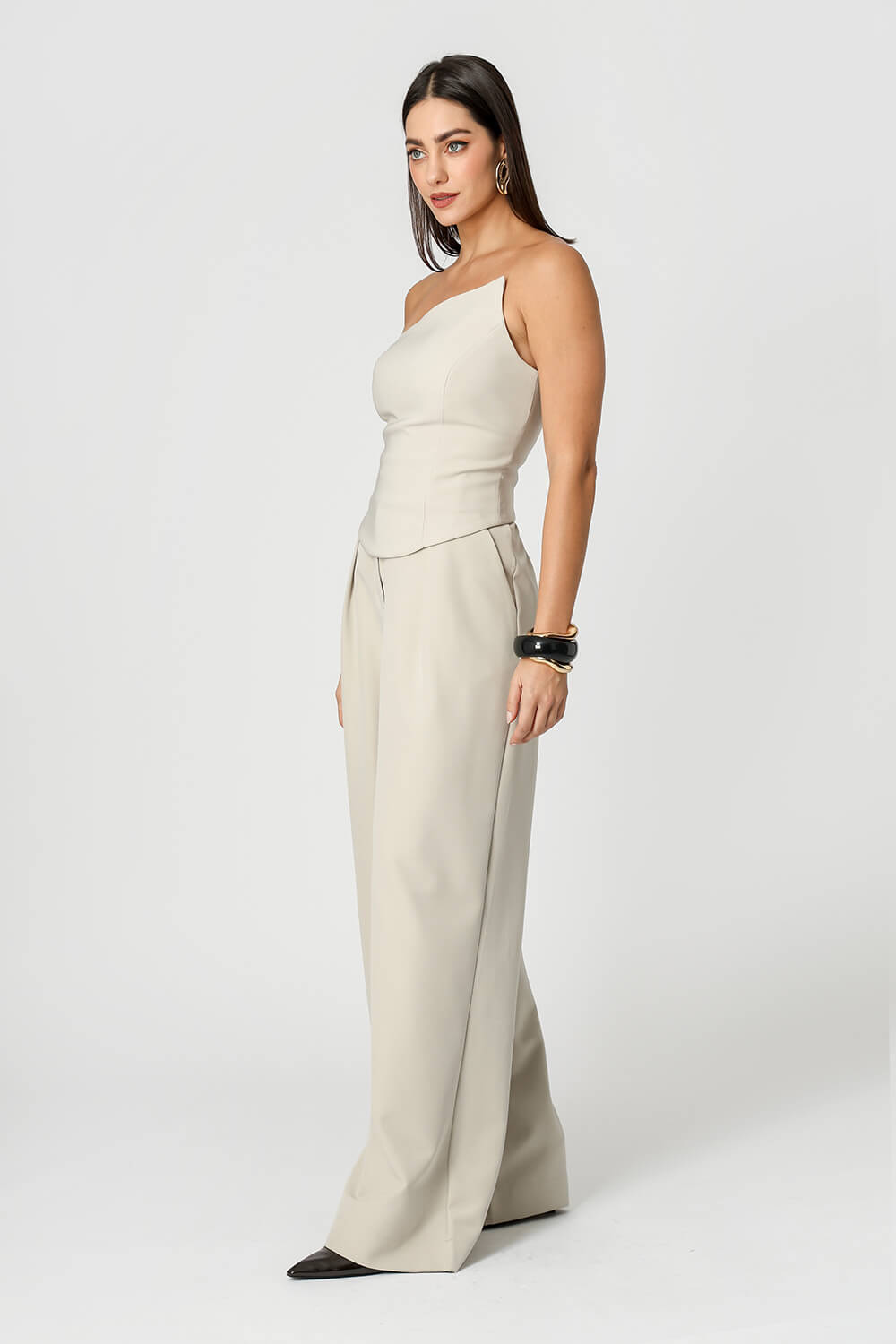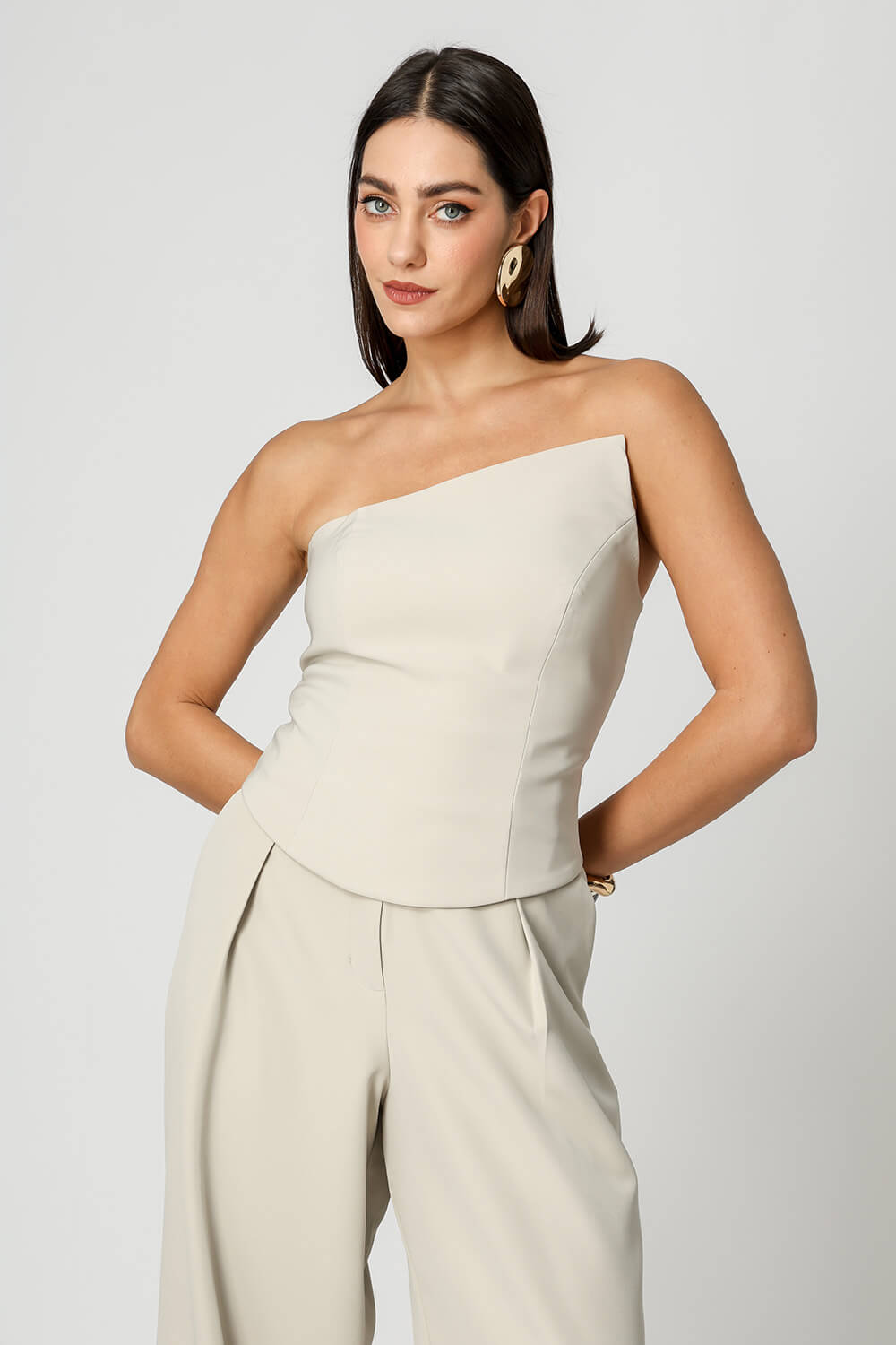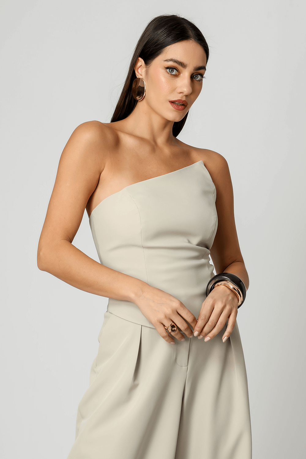 Top de alfaiataria assimétrico com zíper nas costas. Um modelo super atualizado e perfeito para compor vários looks night.