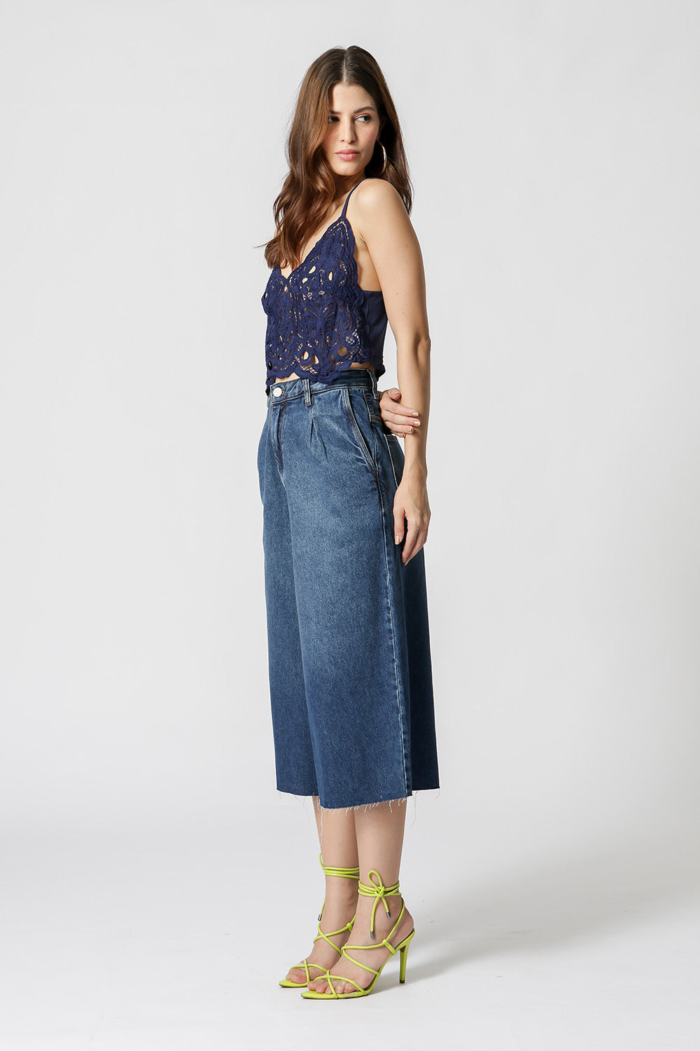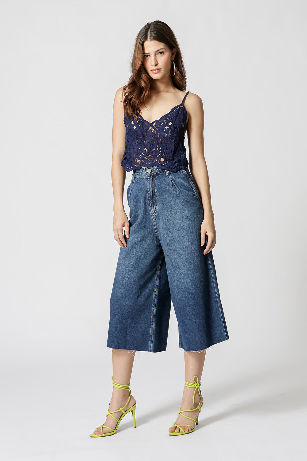 Top con tirantes ajustables y delantero con detalle de guipur. Una pieza confeccionada en tejido fluido de textura ligera. Un modelo delicado y encantador para crear un look muy cómodo y fresco.
