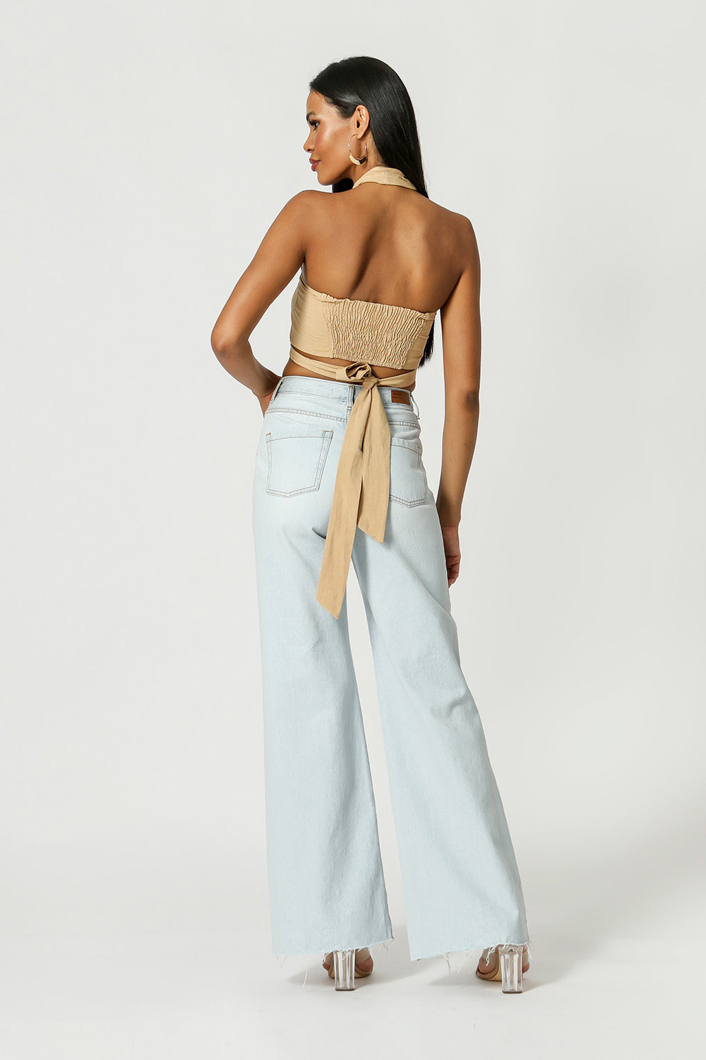 Top con lazada única y un precioso detalle de resina que realza el escote. Una pieza que actualiza varios looks.
