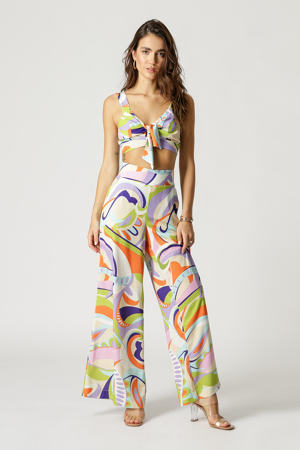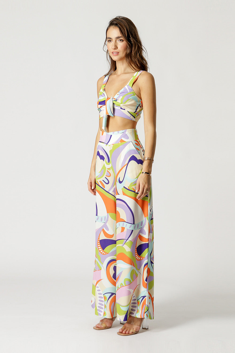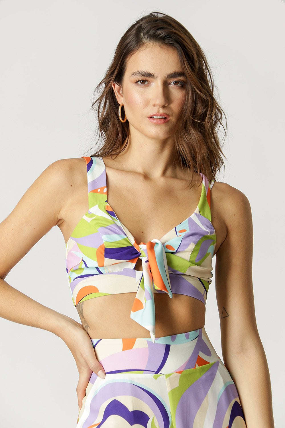 Top con detalle de nudo en el busto y elástico en la espalda. Modelo realizado en tejido ligero y súper trendy. Ideal para ocasiones casuales.