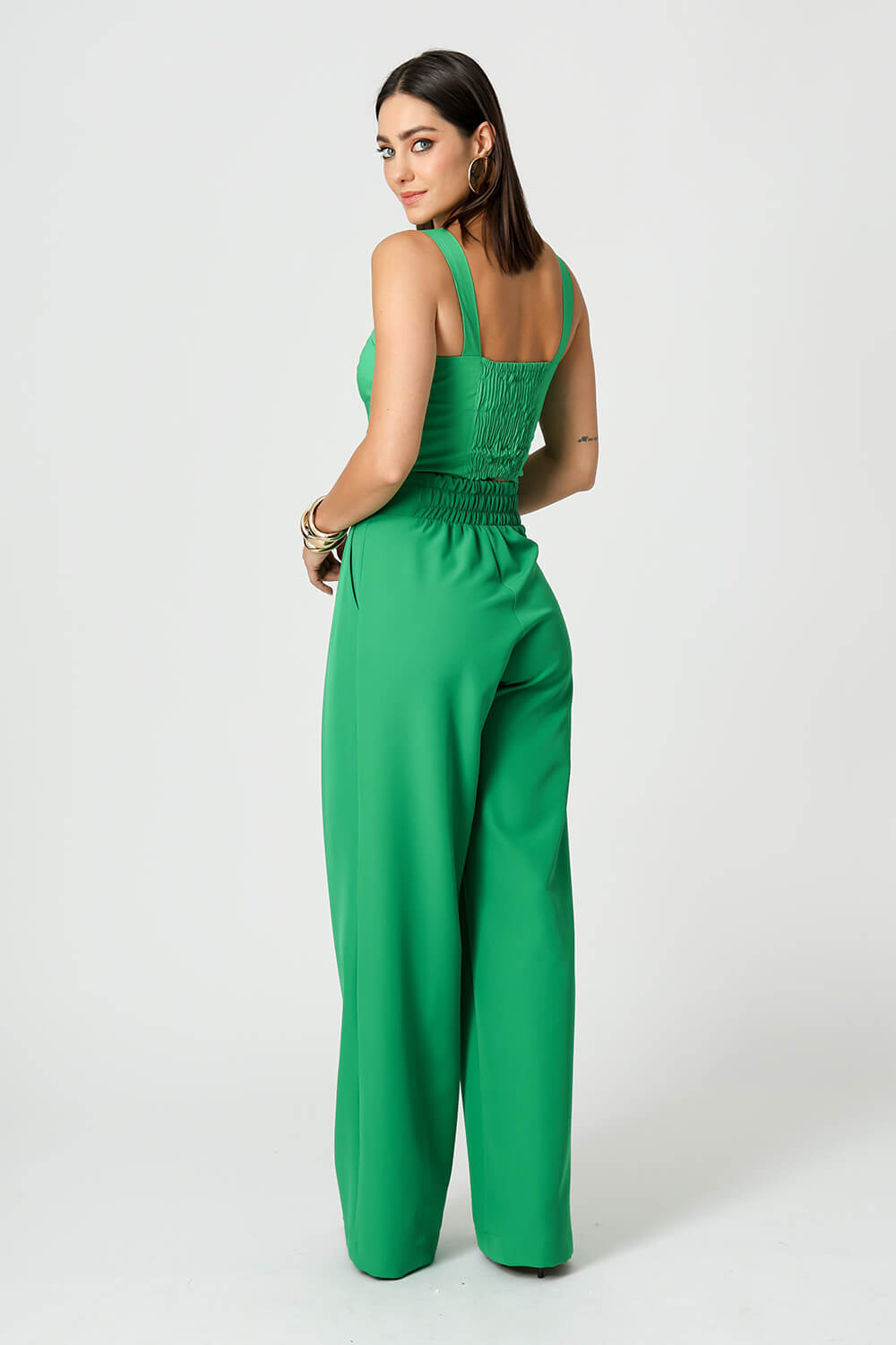 Top corto con escote corazón, cortes en busto y tirantes, espalda elástica. Una pieza única que necesitas para completar tu look casual.
