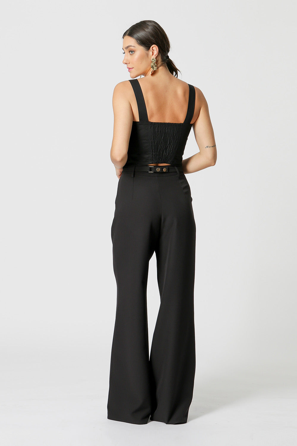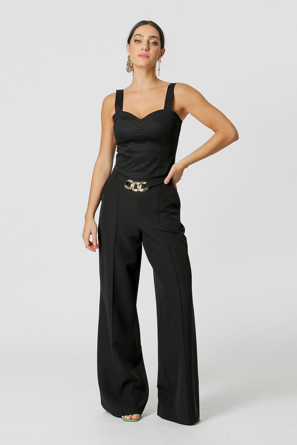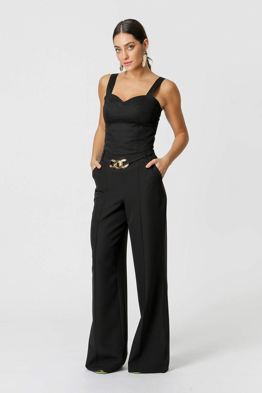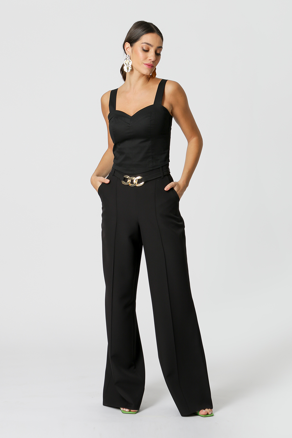 Top corto con escote corazón, cortes en busto y tirantes, espalda elástica. Una pieza única que necesitas para completar tu look casual.