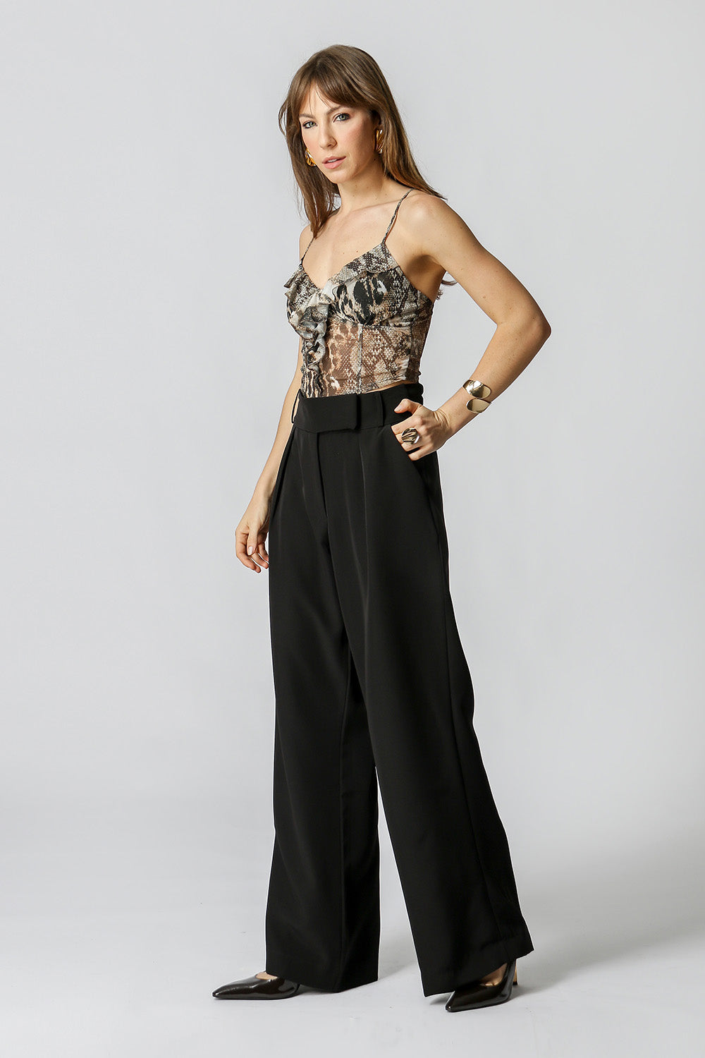 Top em comprimento cropped e modelagem corselet, confeccionado em tule e detalhes em babados. Uma peça super tendência para arrasar na nigth.
