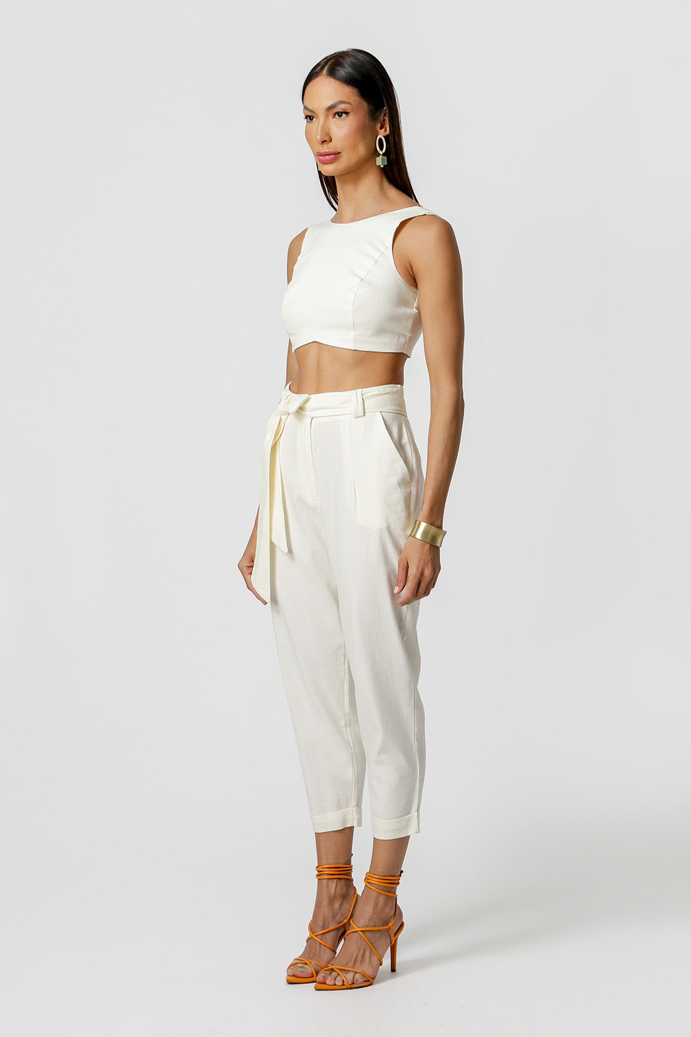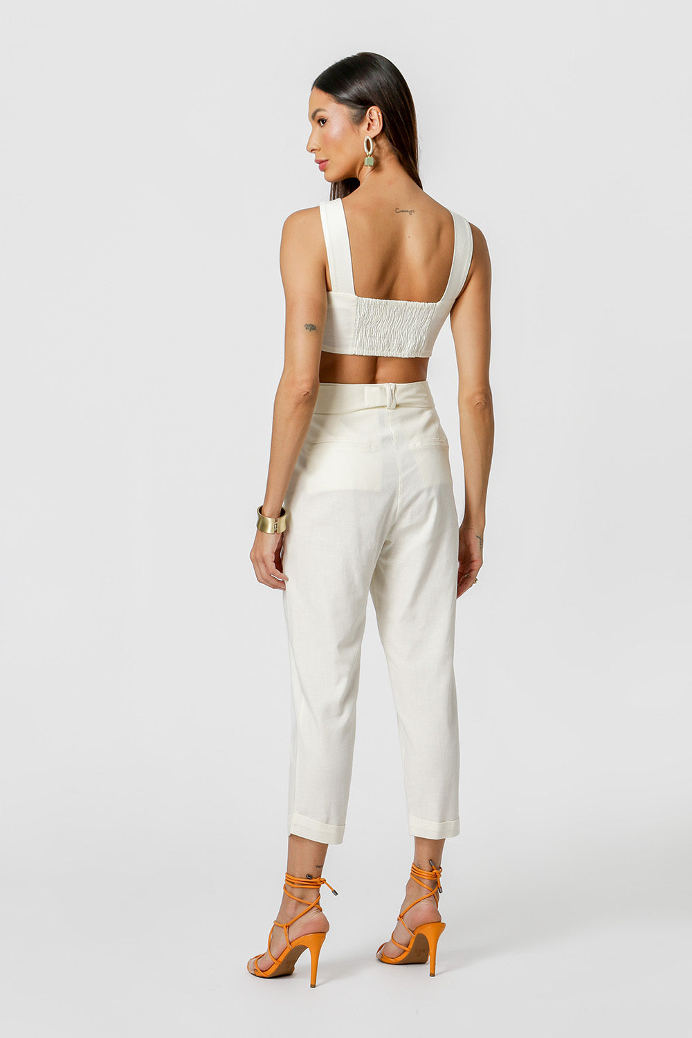 Top corto con corte bajo el busto, súper trendy. Pieza confeccionada en lino viscosa, con elástico en la espalda para mantener la comodidad y adaptarse a diferentes tipos de cuerpo.