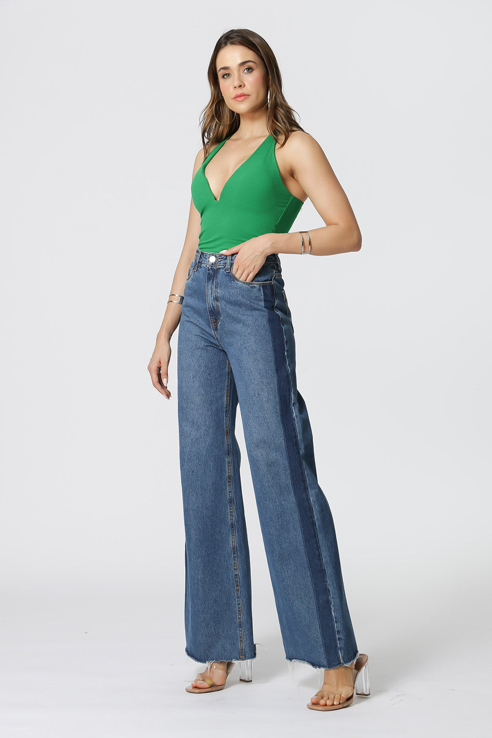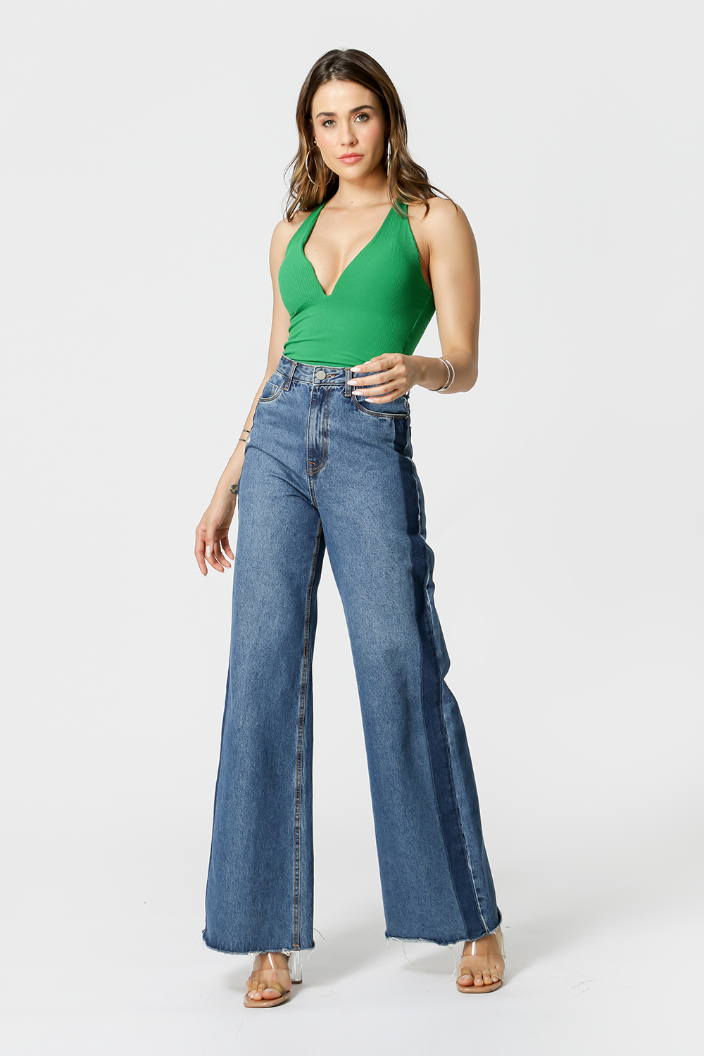 Top corto de punto canalé fino, una pieza con un escote delicado y muy realzado. Una prenda para complementar diferentes looks.
