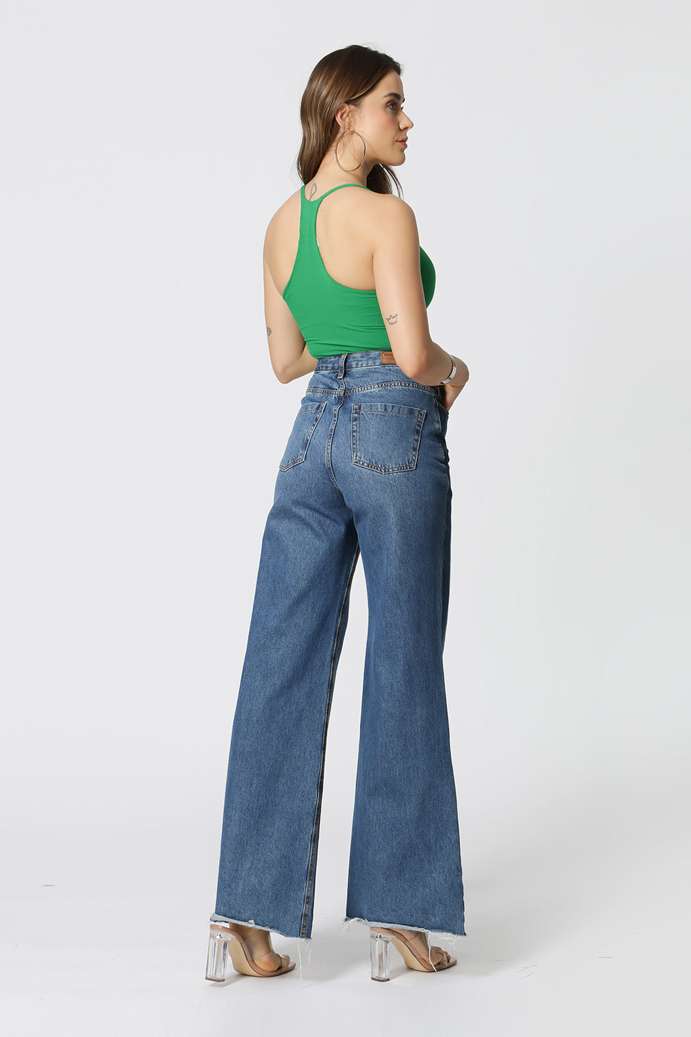 Pantalones minimalistas de pierna ancha - BLANCO ROJO