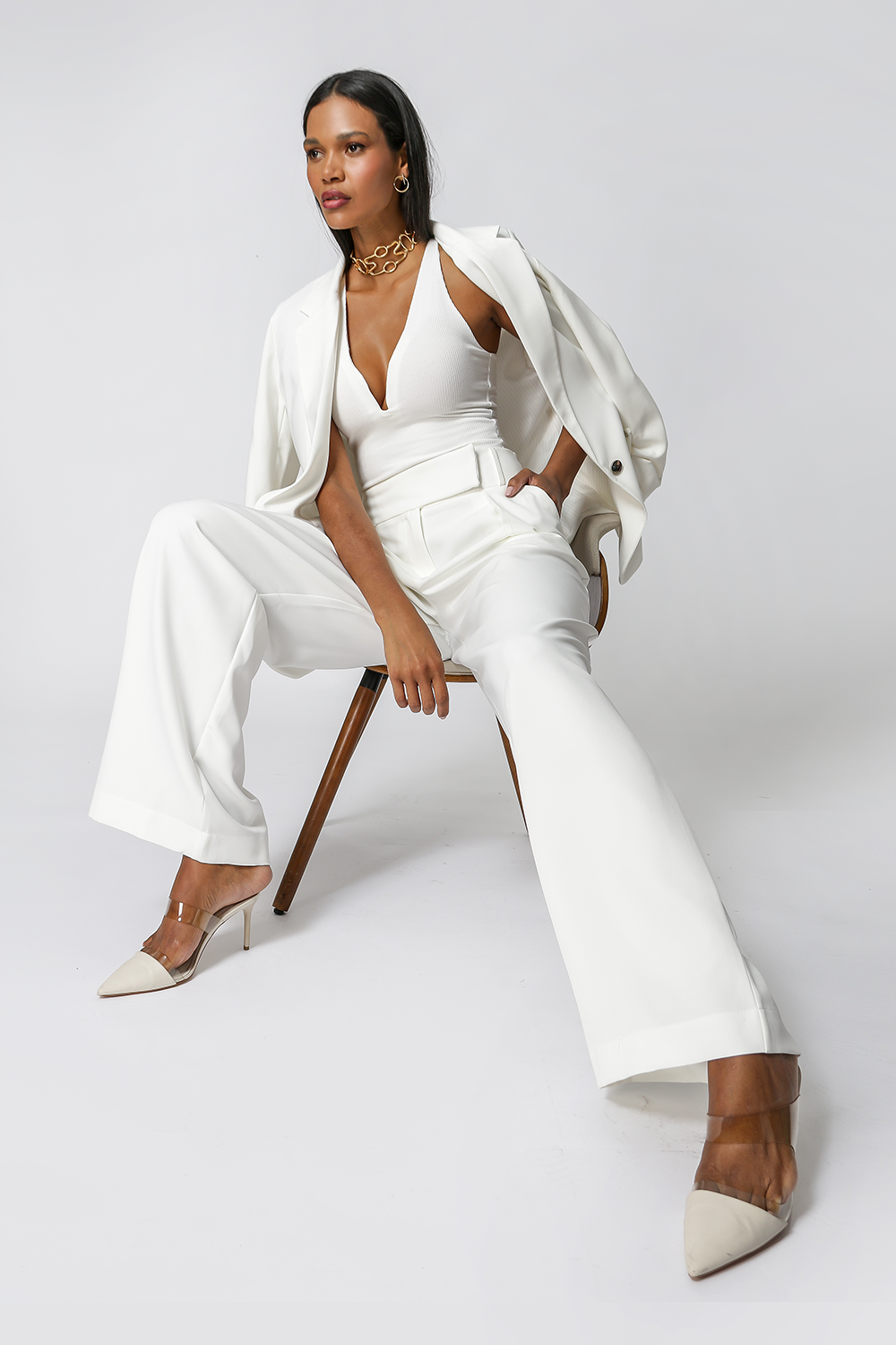 Pantalones minimalistas de pierna ancha - BLANCO ROJO Pantalones minimalistas de pierna ancha - BLANCO ROJO