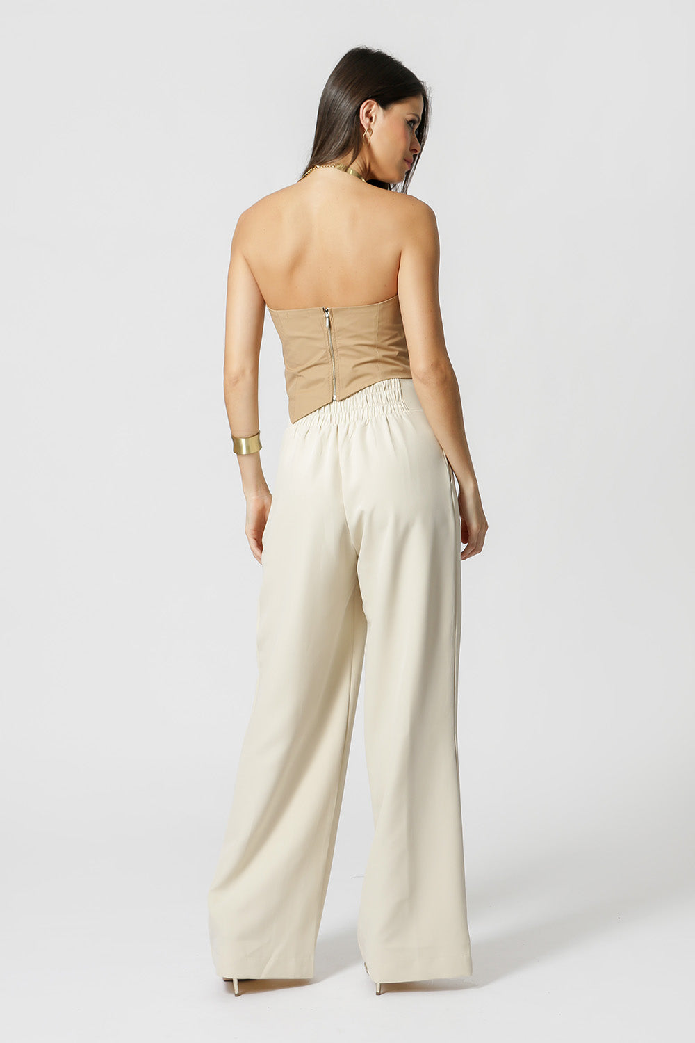 Blusa sin mangas de origami con aleta interior y cremallera en la espalda. Pieza confeccionada en tejido tricolina. Un modelo único y elegante para quienes les gusta crear looks casuales con estilo.