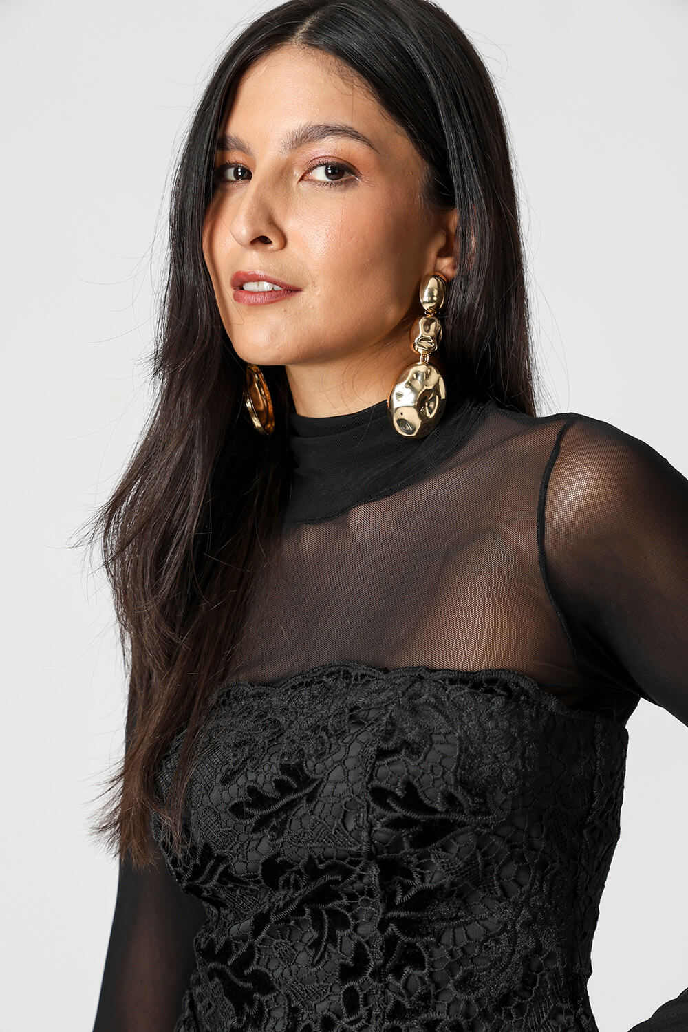 Top strapless confeccionada em guippir, com delicado barrado no decote. Peça sofisticada, ideal para compor looks elegantes e femininos.
