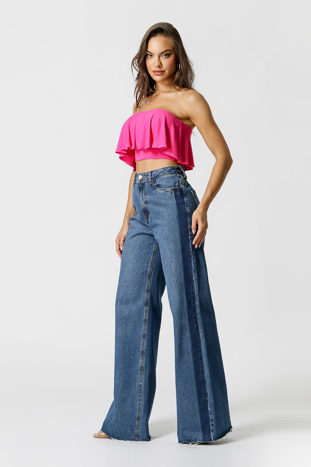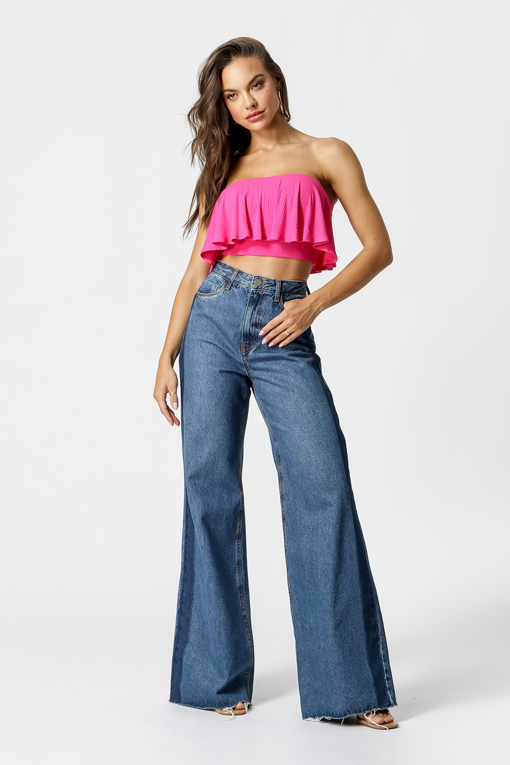 Top strapless con volantes. Fabricado en tejido de punto acanalado. Pieza práctica y perfecta para lucir este verano.