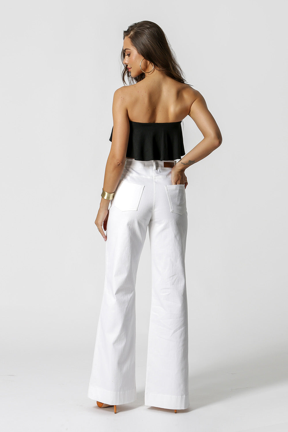 Top strapless con volantes. Fabricado en tejido de punto acanalado. Pieza práctica y perfecta para lucir este verano.
