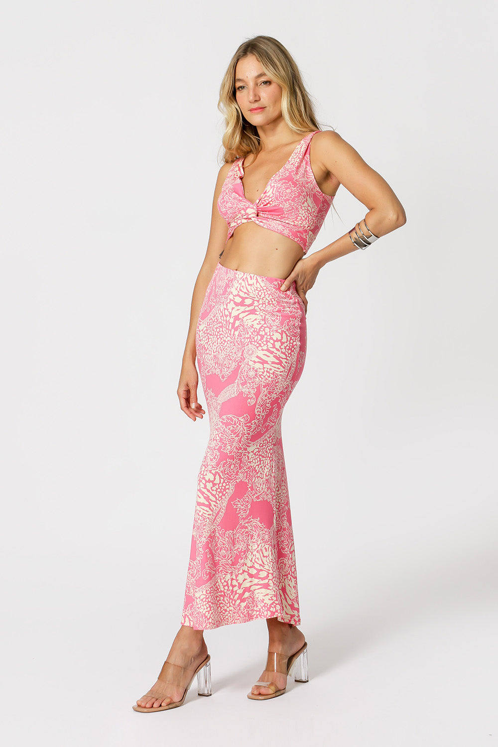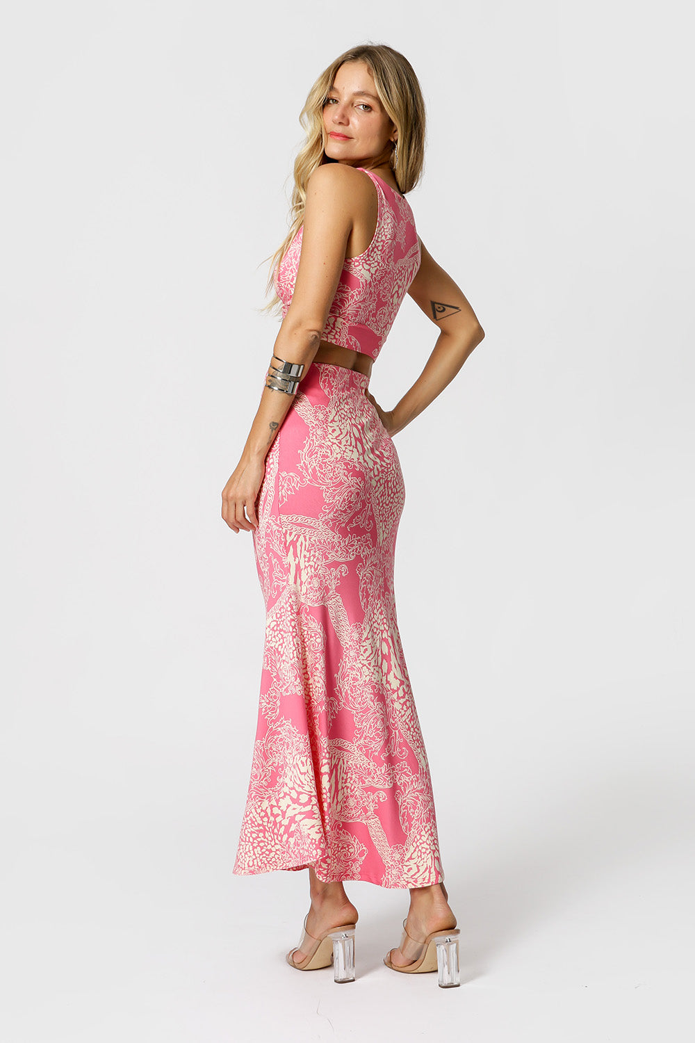 Top sin mangas con giro. Fabricado en tejido de punto estampado. Una pieza básica y cómoda, perfecta para el uso casual diario.