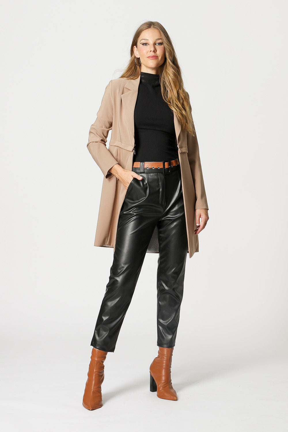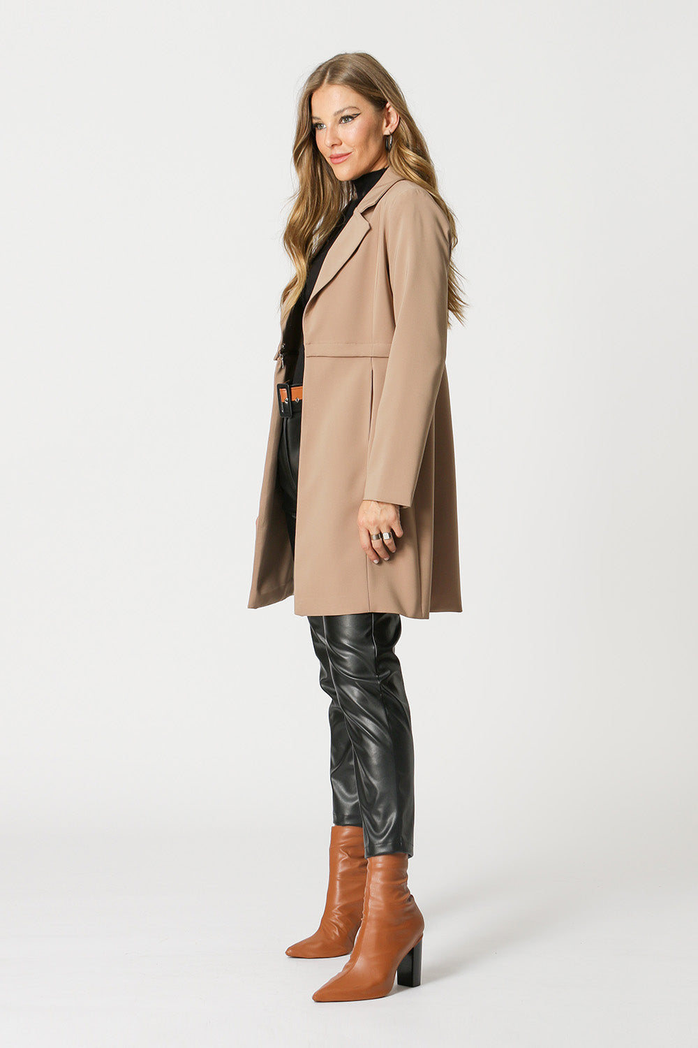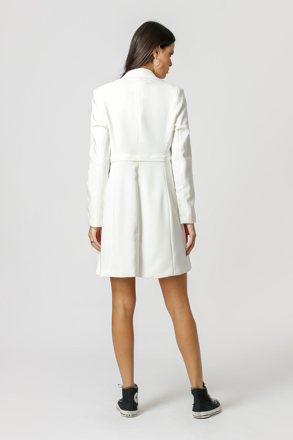 Trench coat de alfaiataria com forro diferenciado. Possui design multifuncional, com um zíper destacável podendo ser usado como trench ou como blazer cropped, um modelo 2 em 1 que multiplica suas possibilidades.