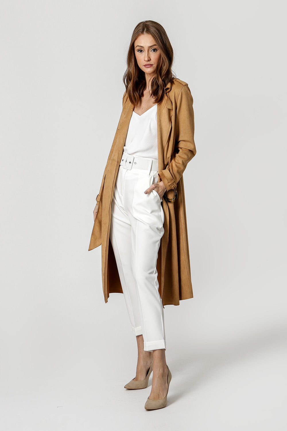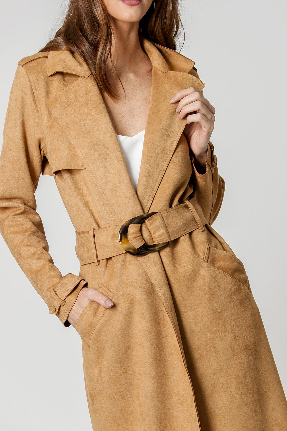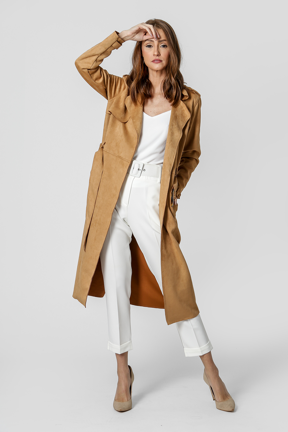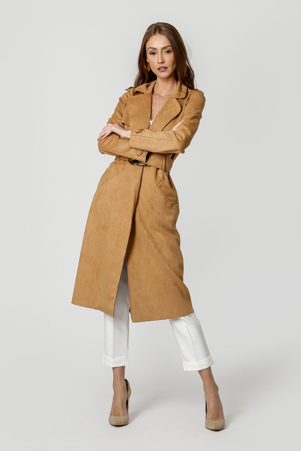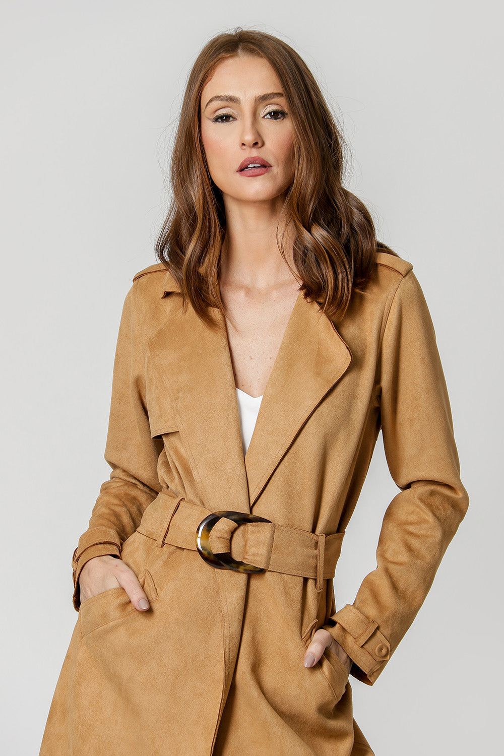 Gabardina con detalle de bajo y martingala con botones. La pieza viene con un cinturón con hebilla. Pieza clave para hacer tu look más elegante.