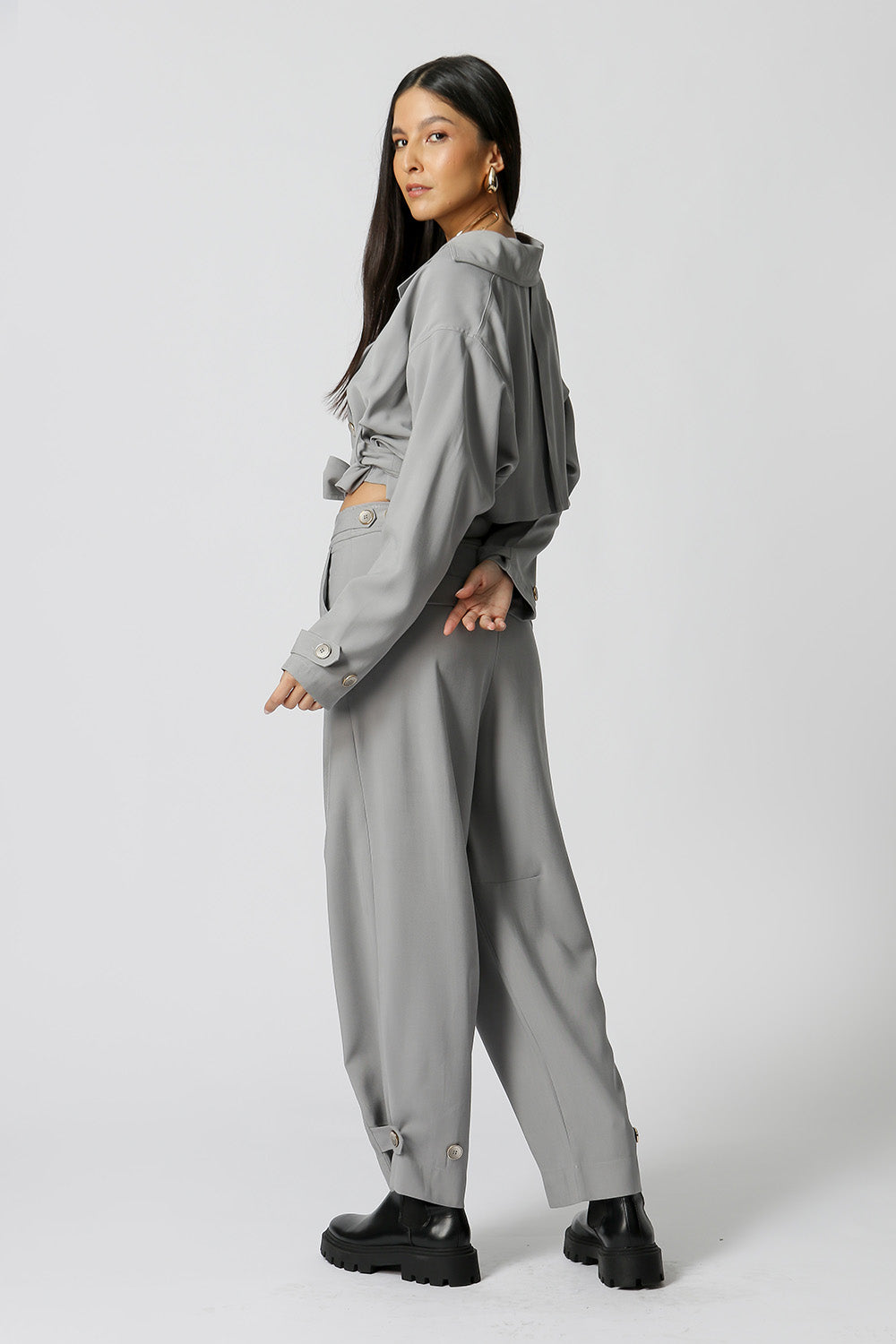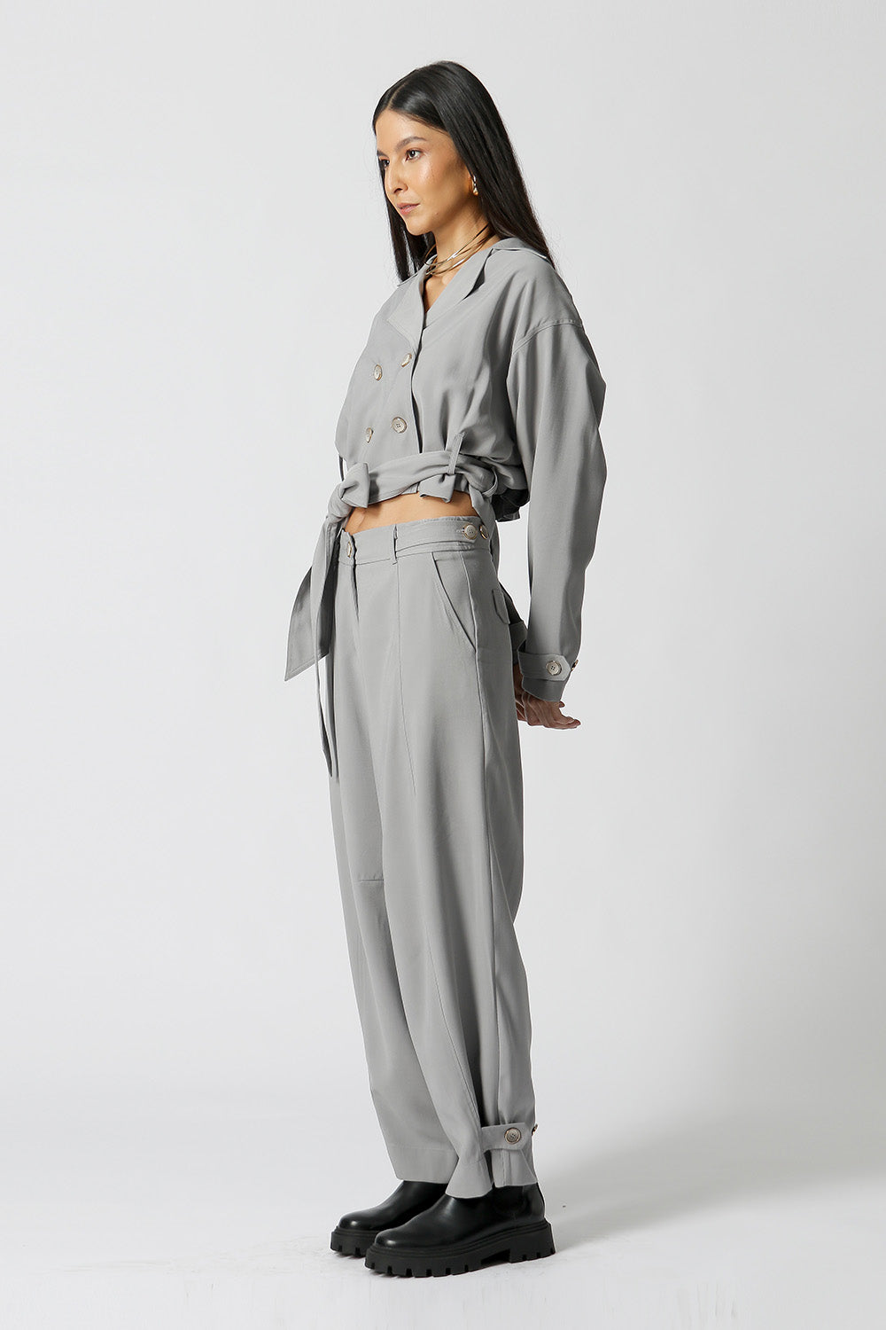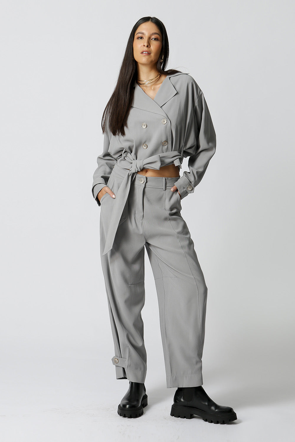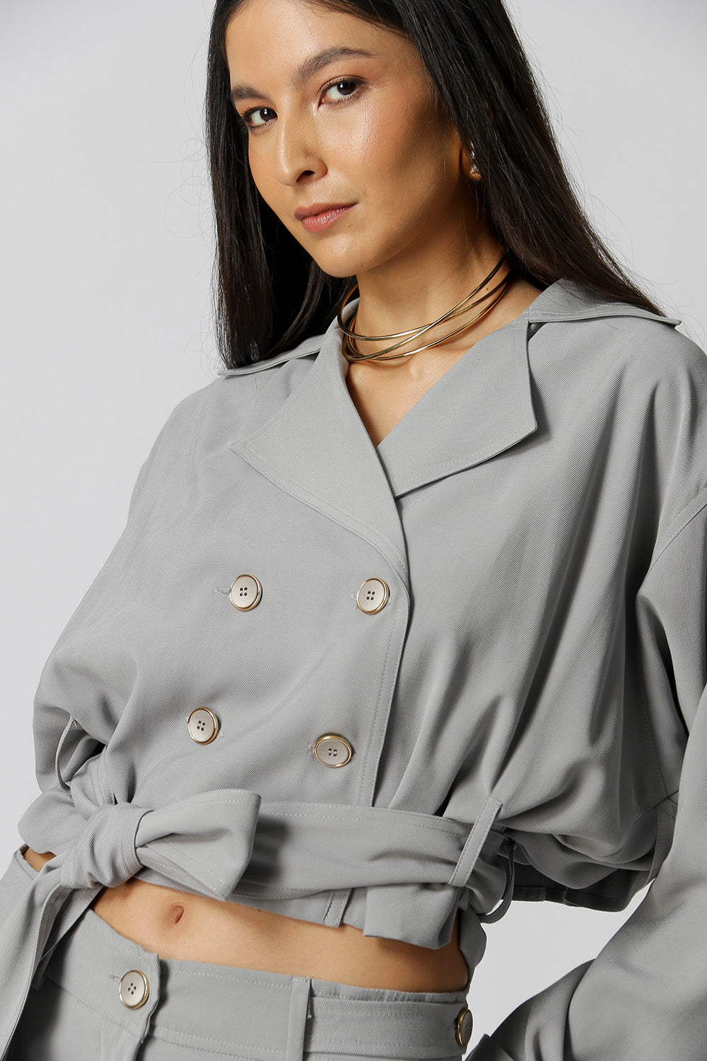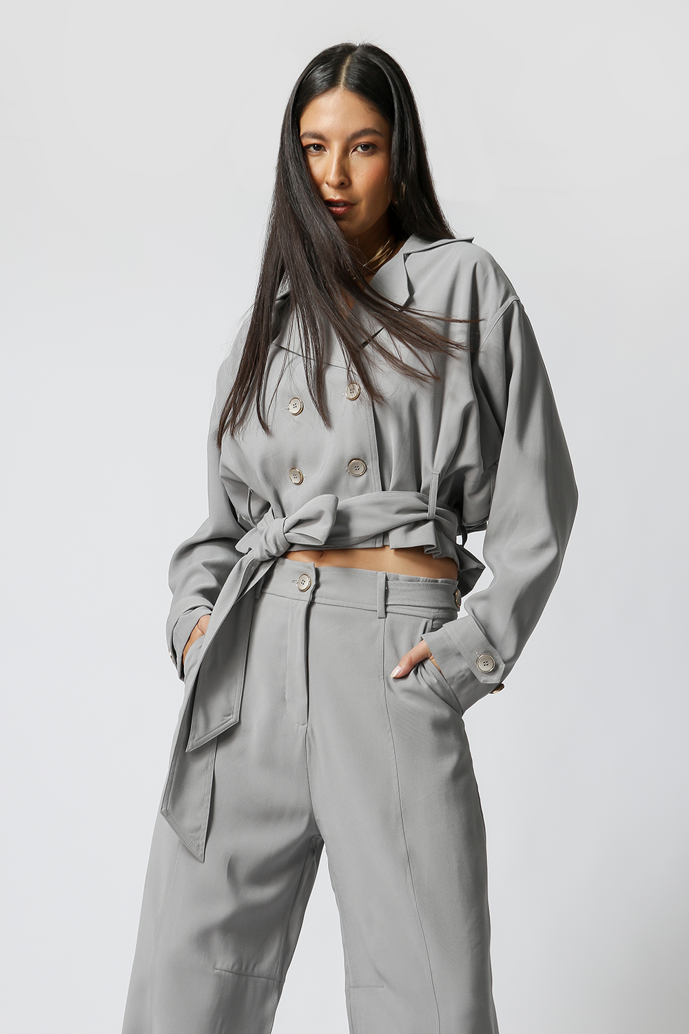 Gabardina corta con banda confeccionada en tejido tencel, una pieza moderna y con estilo, cómoda, estilosa y con un ajuste increíble, perfecta para un look casual.