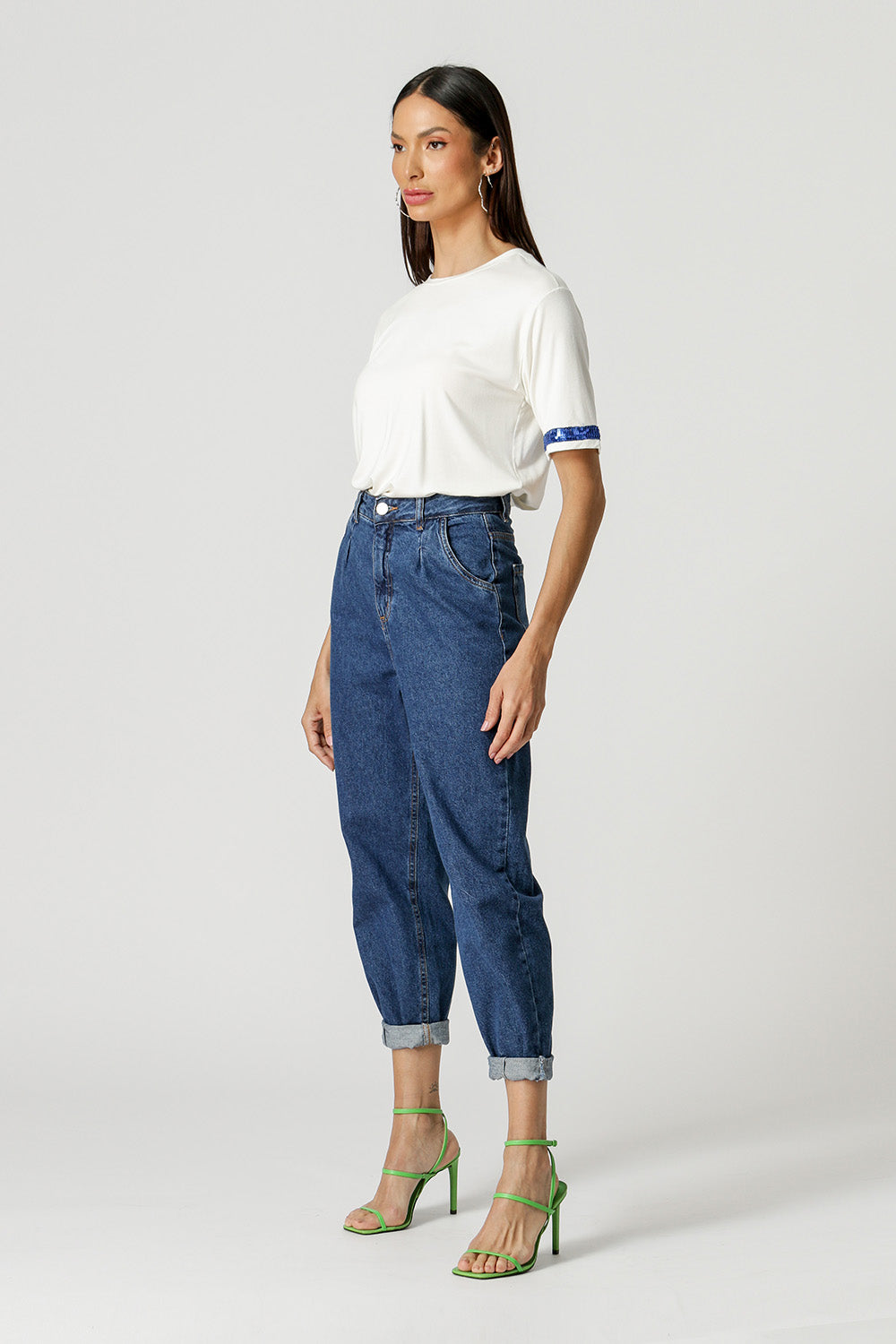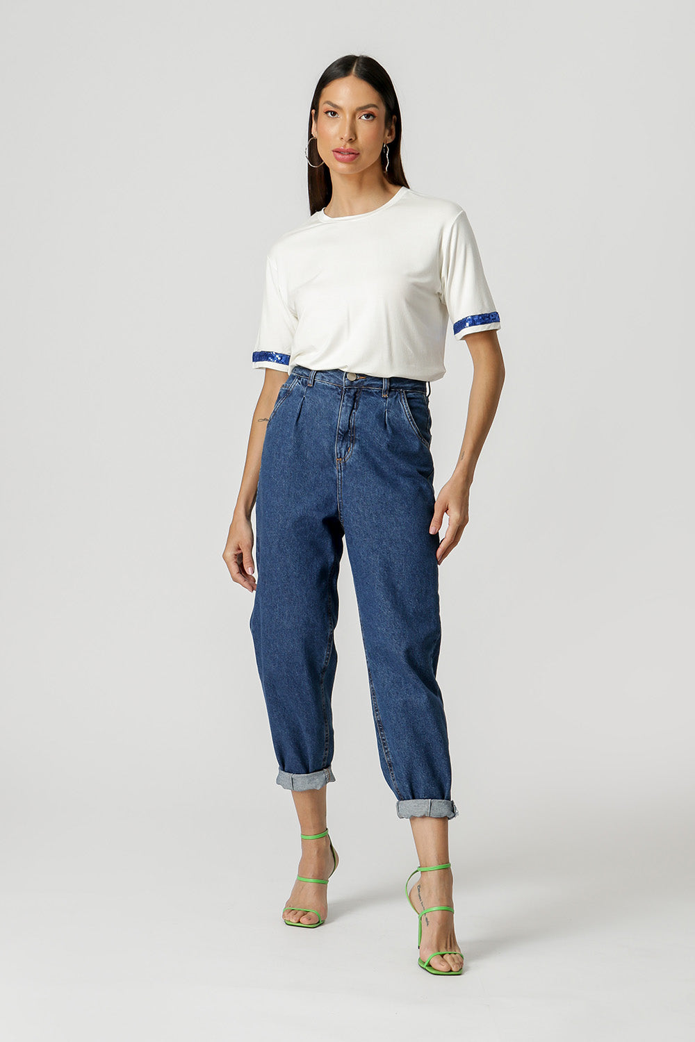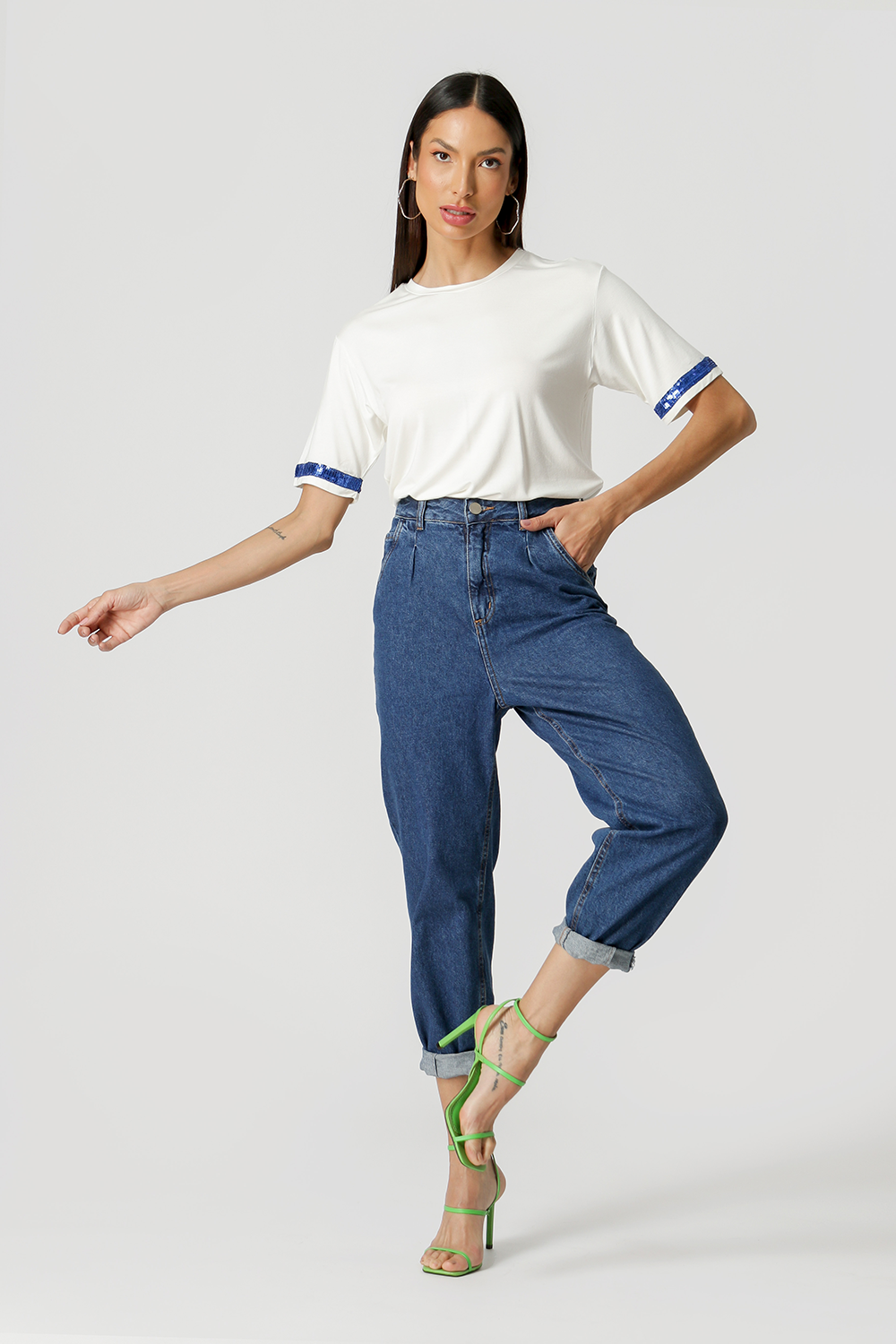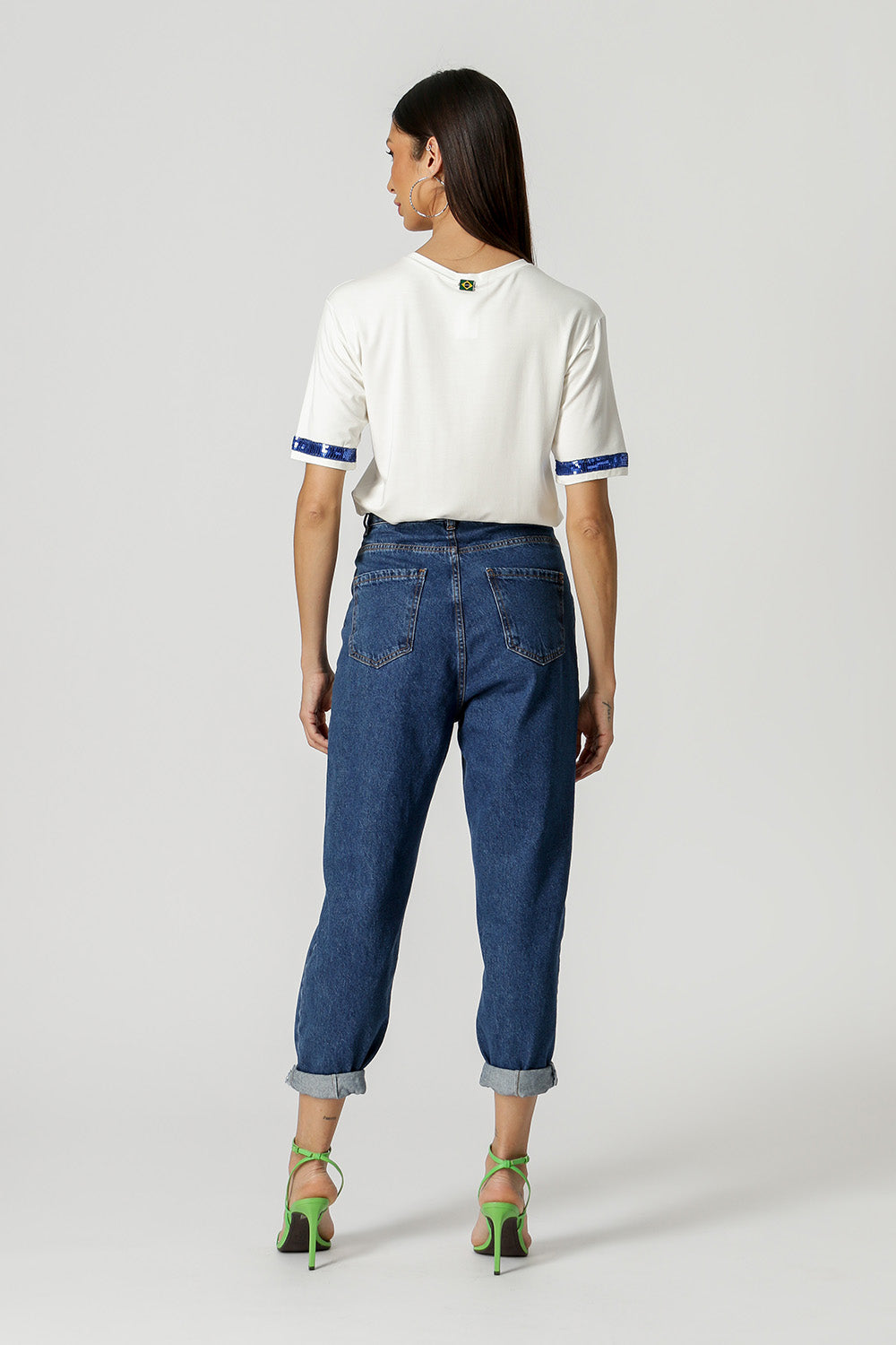 Camiseta con detalle de lentejuelas en las mangas y signo brasileño en la nuca. Pieza cómoda para apoyar a Brasil con estilo.