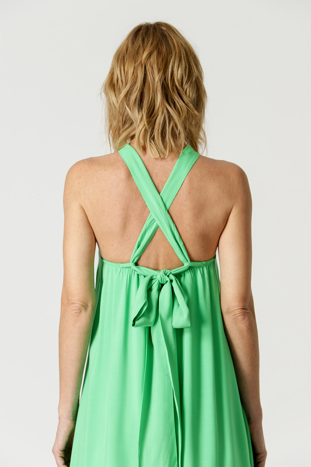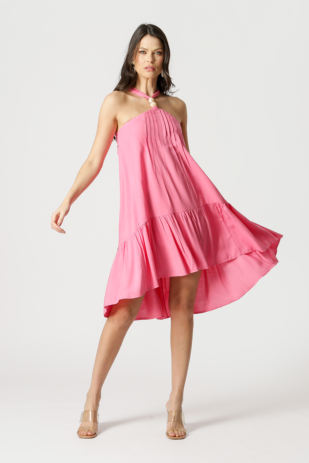 Vestido curto e amplo, confeccionado em viscose deixando a peça com um caimento fluido. Um look casual chique e super fresh para o verão.