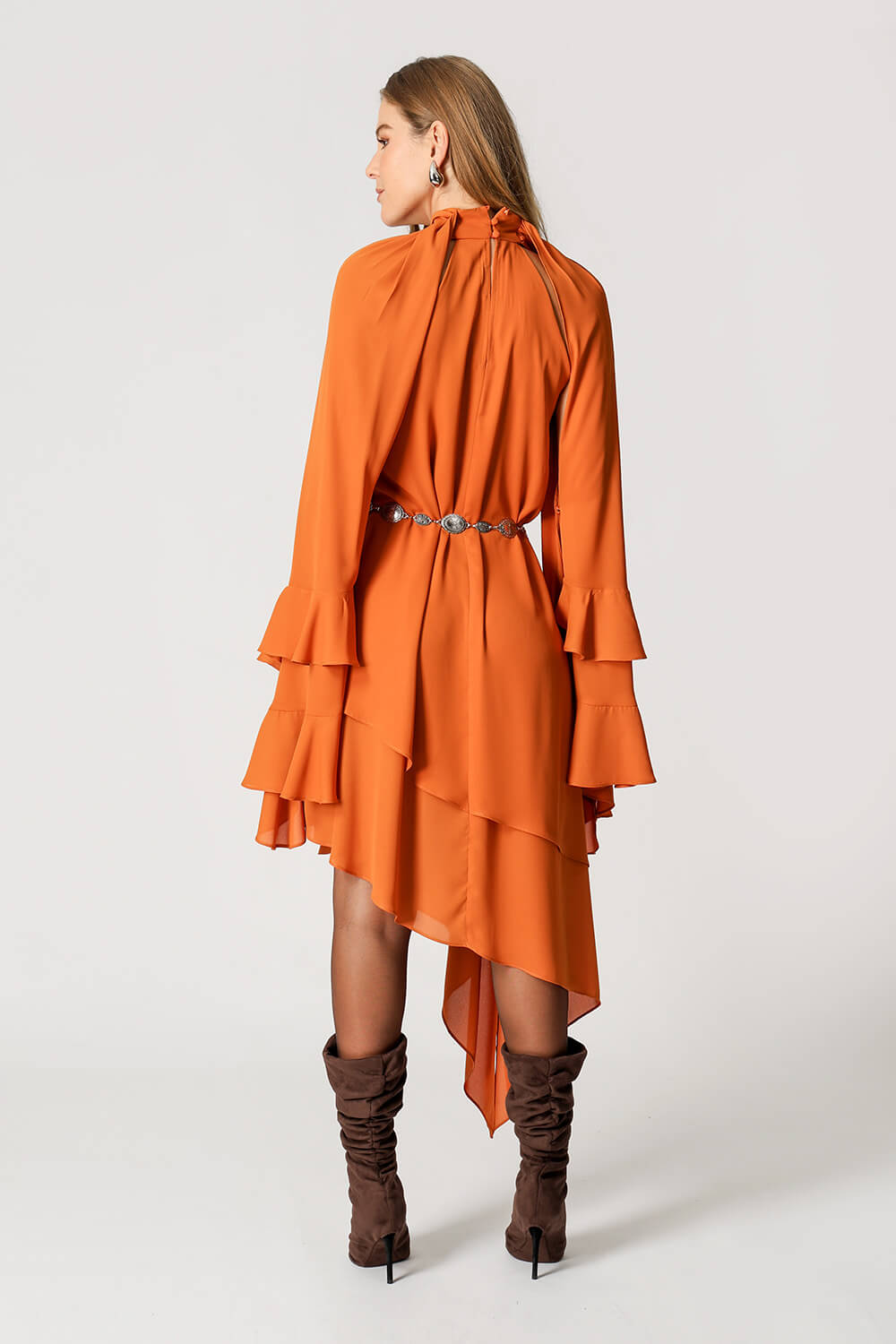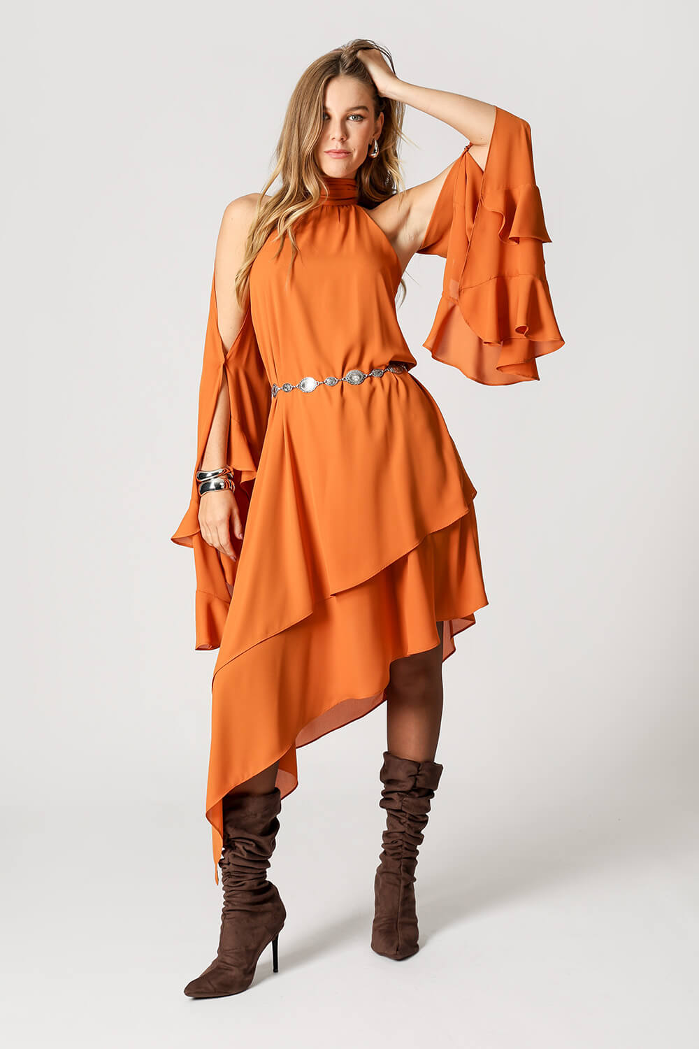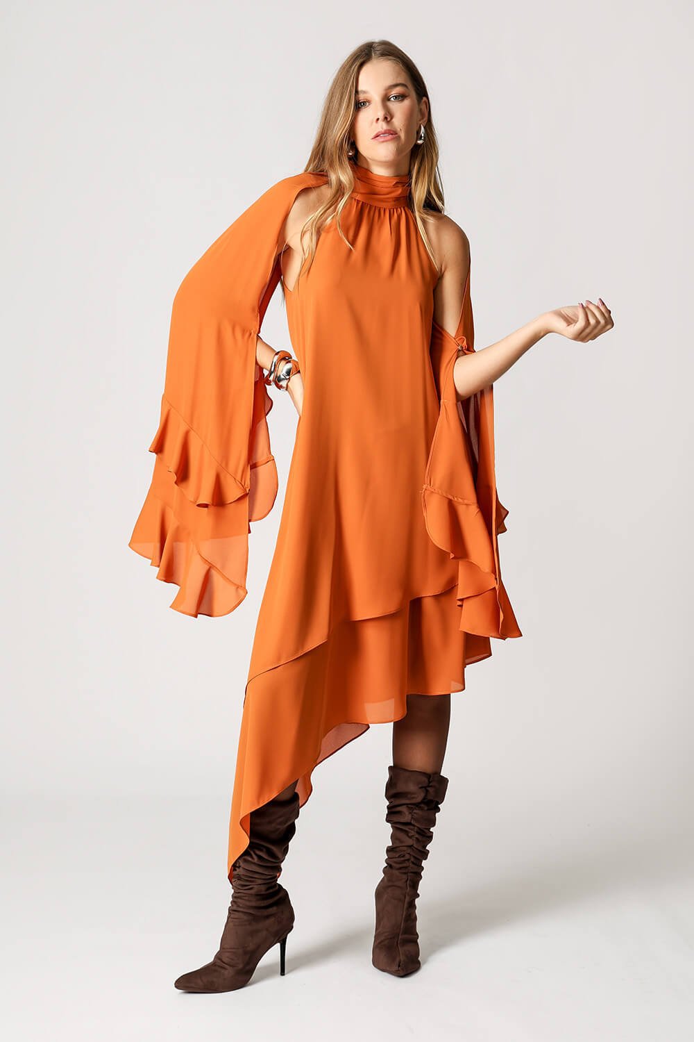 Vestido asimétrico de capas - NARANJA ESC