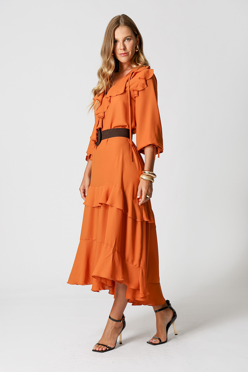 Vestido con volantes, diseño fluido que aporta ligereza y movimiento. Los volantes añaden un toque de sofisticación y estilo, haciéndolo perfecto para una variedad de ocasiones. ¡Es una elección maravillosa para quienes buscan comodidad sin sacrificar la moda!