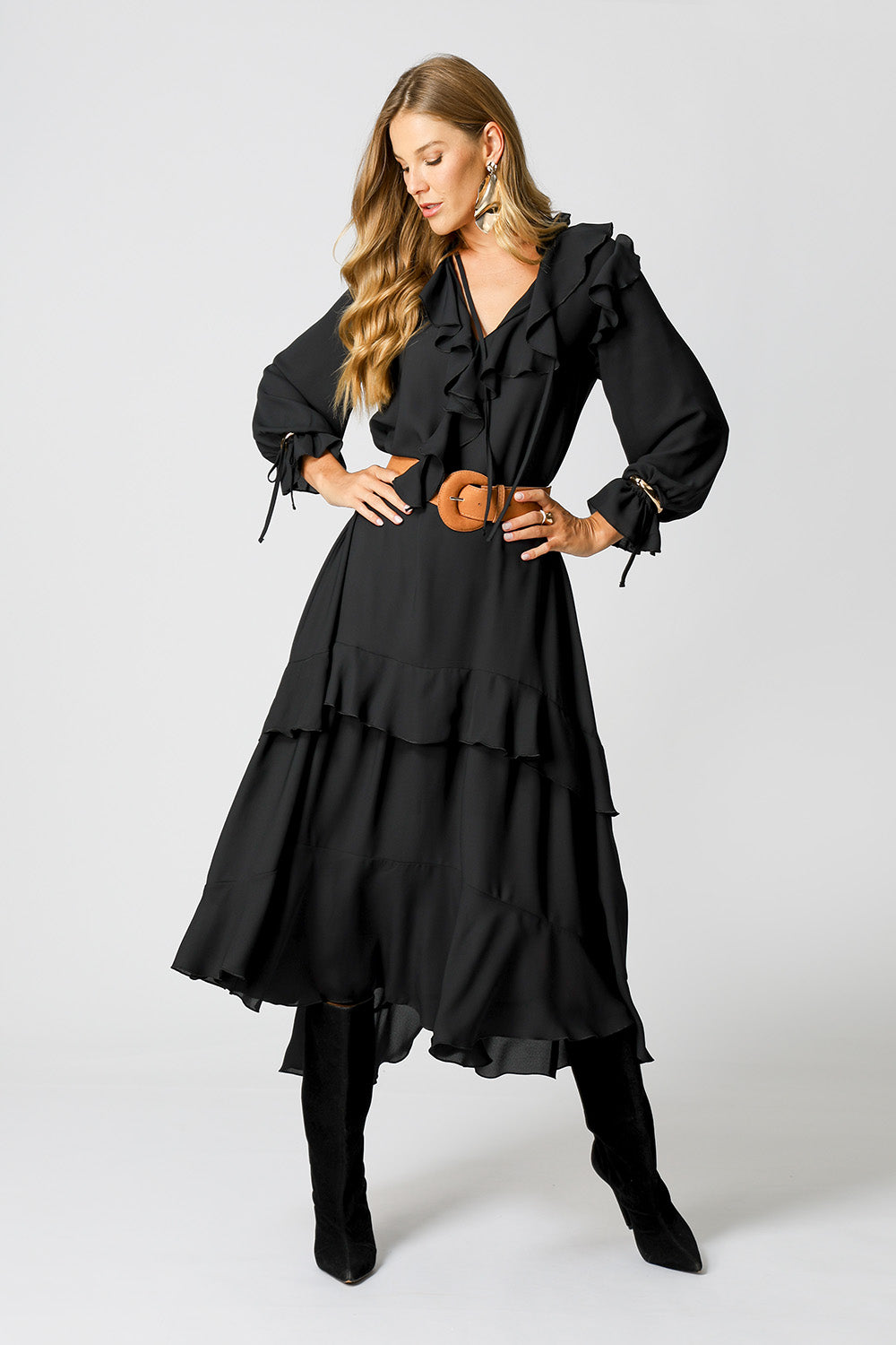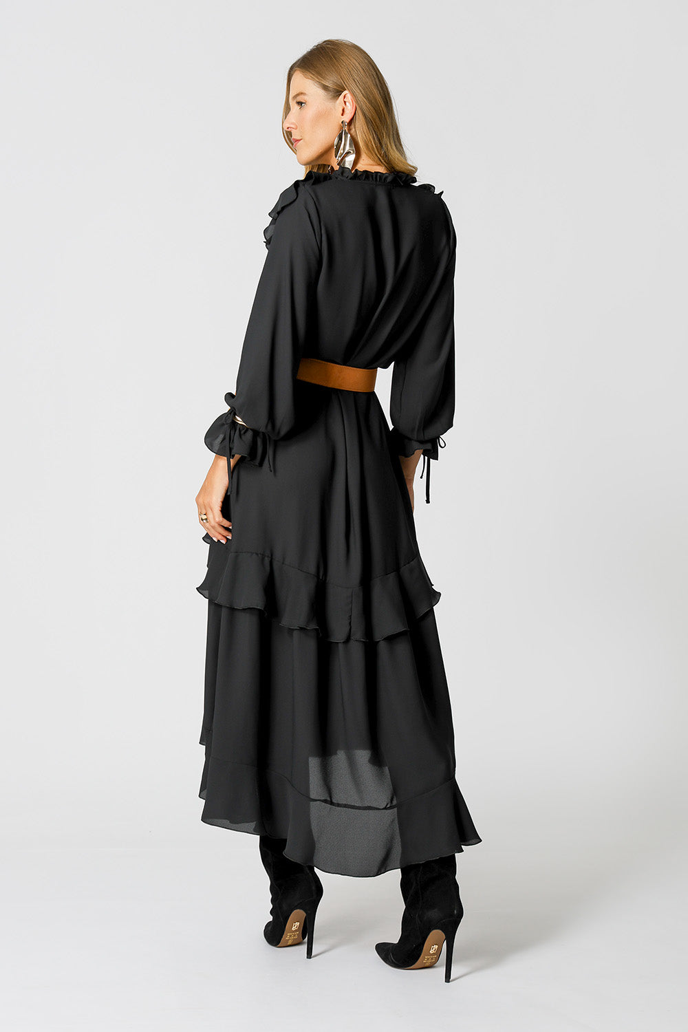 Vestido con volantes, diseño fluido que aporta ligereza y movimiento. Los volantes añaden un toque de sofisticación y estilo, haciéndolo perfecto para una variedad de ocasiones. ¡Es una elección maravillosa para quienes buscan comodidad sin sacrificar la moda!