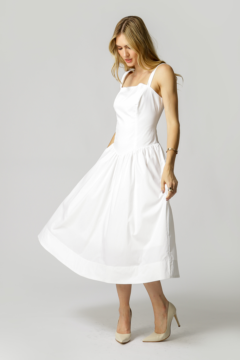 - Vestido con corsé y falda fruncida - BLANCO ROJO