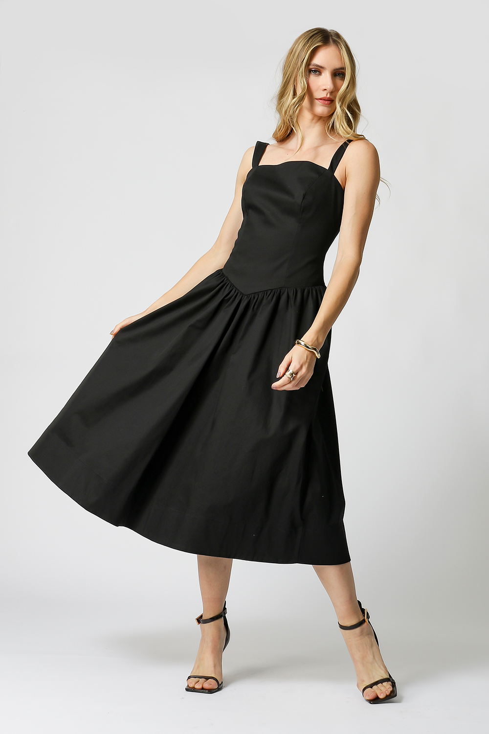 Vestido corsé con falda fruncida, estilo romántico ideal para ambientes casuales.
