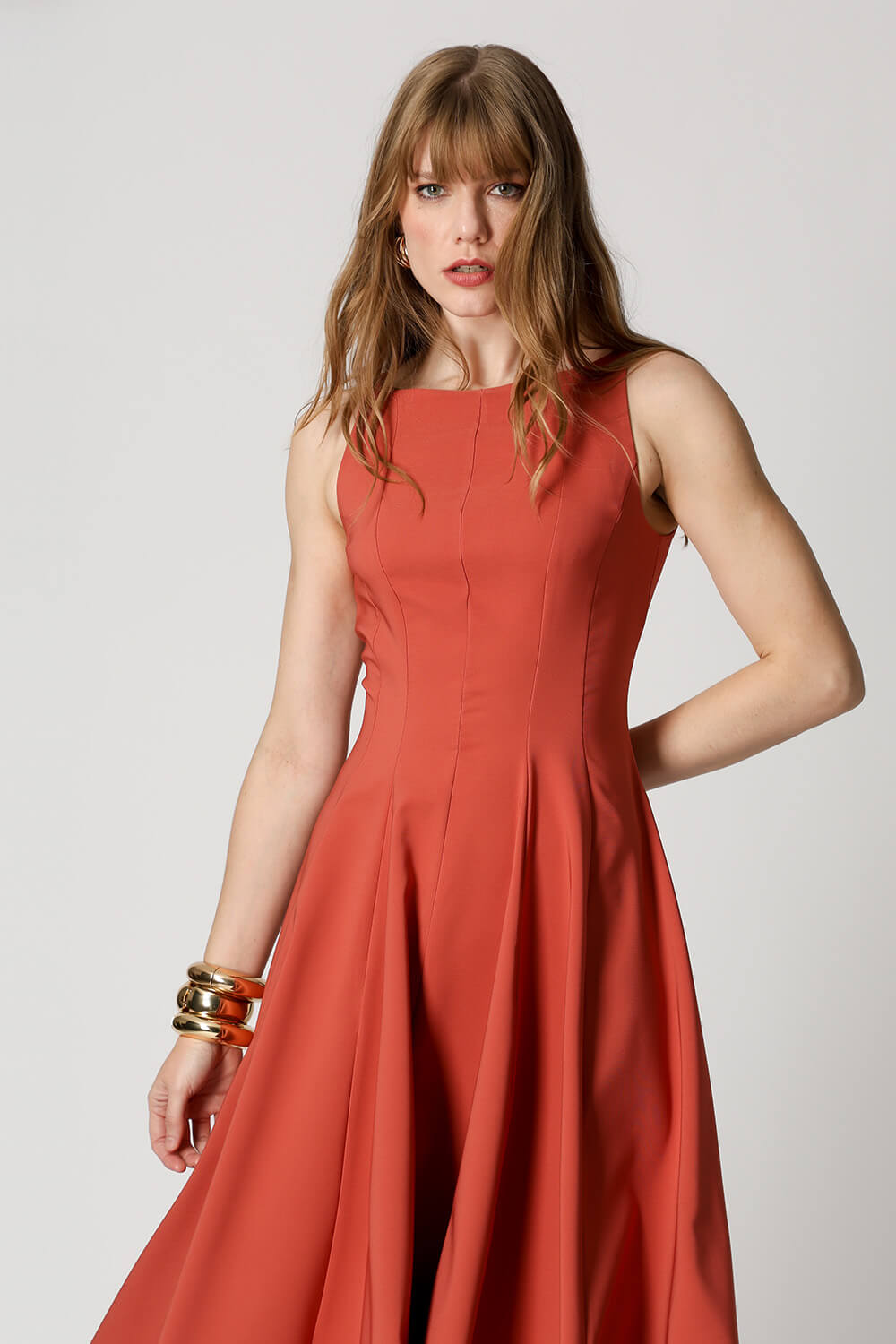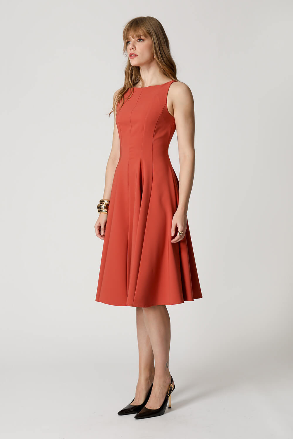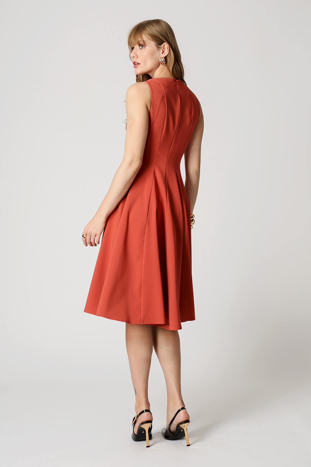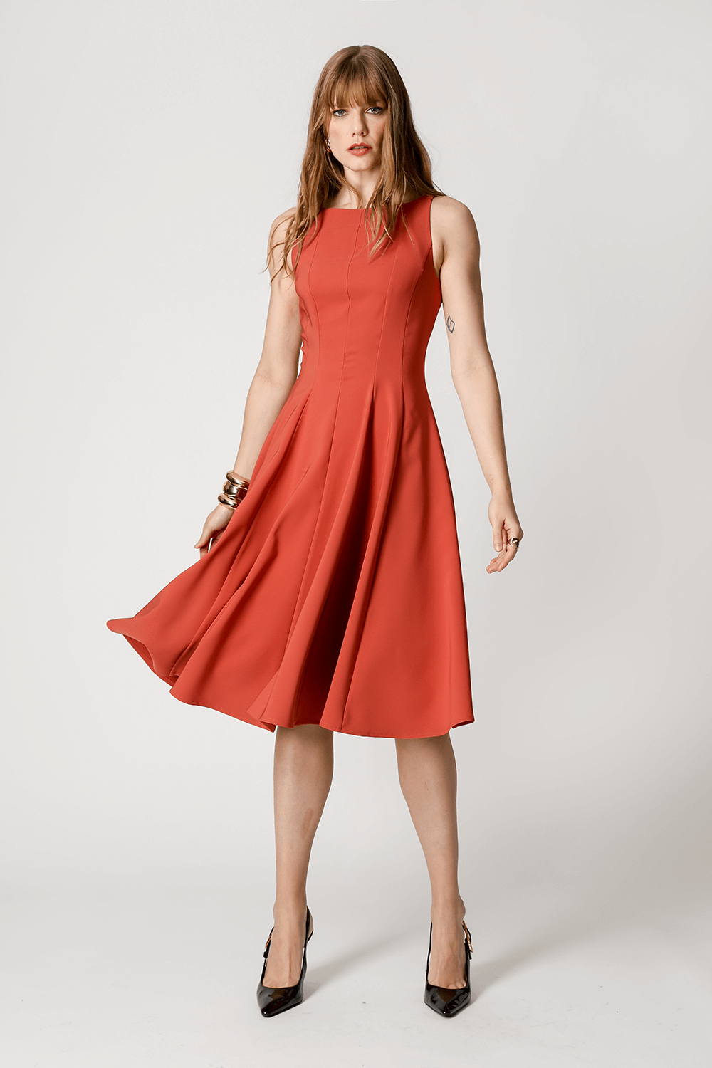 Vestido com modelagem godê e cintura marcada, confeccionado em tecido de alfaiataria que garante elegância e ótimo caimento. Ideal para ocasiões que pedem um look sofisticado e feminino.