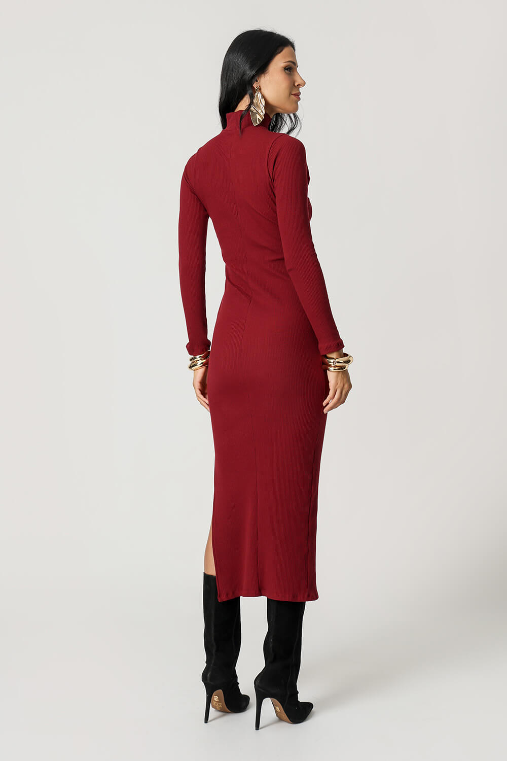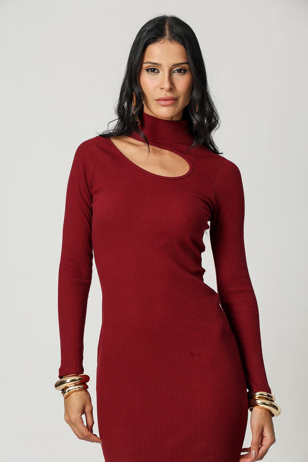 Este elegante y moderno vestido es la combinación perfecta de sofisticación y sensualidad, el modelo tiene un corte en el escote que deja ver sutilmente la piel, creando un look atrevido y a la vez refinado. Ideal para ocasiones especiales o eventos nocturnos.