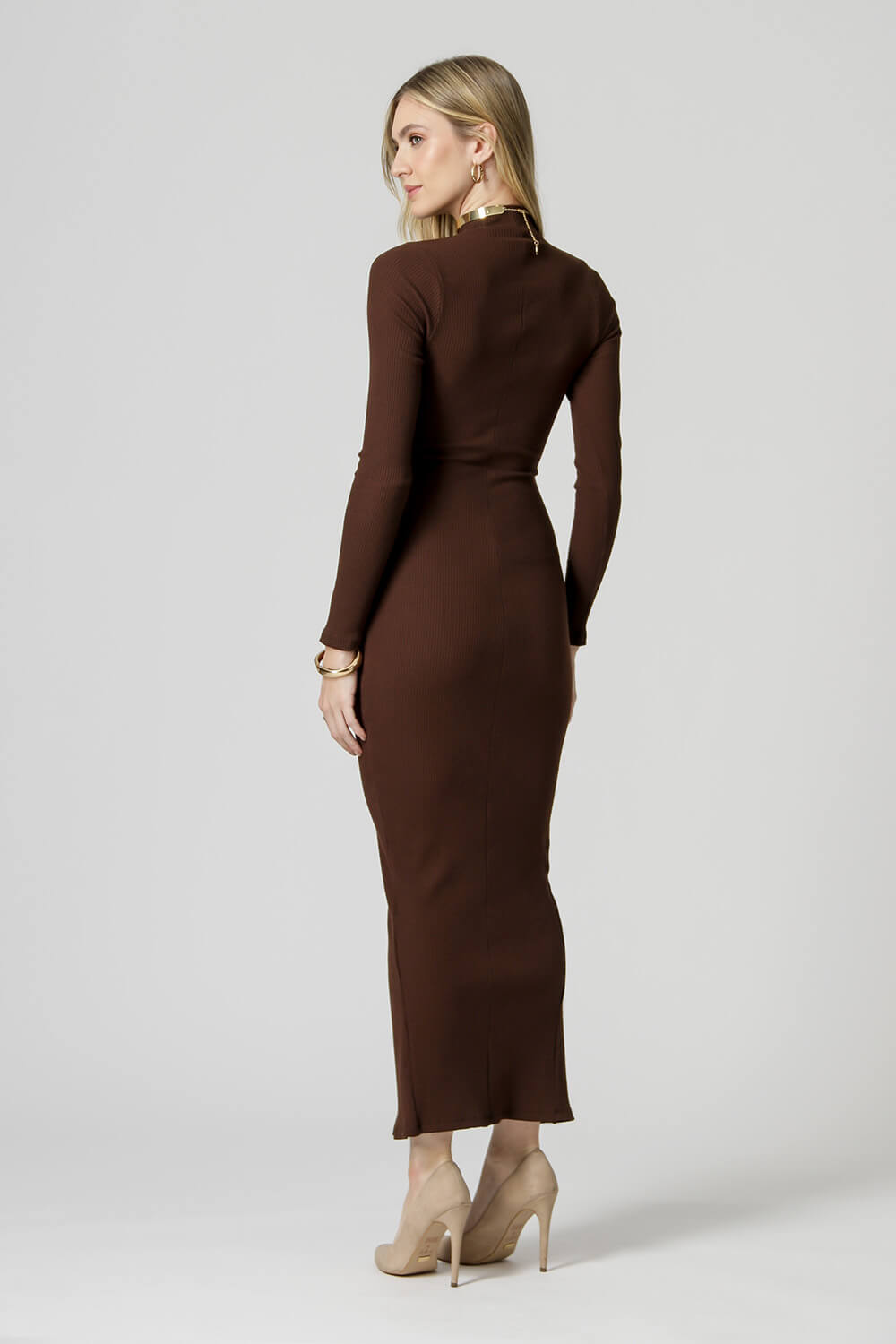 Vestido con abertura profunda, punto canalé grueso, escote estratégico para realzar el busto, modelo casual que se puede usar en diversas ocasiones.