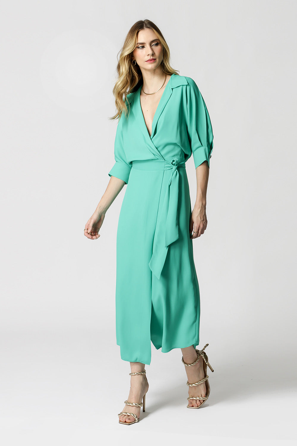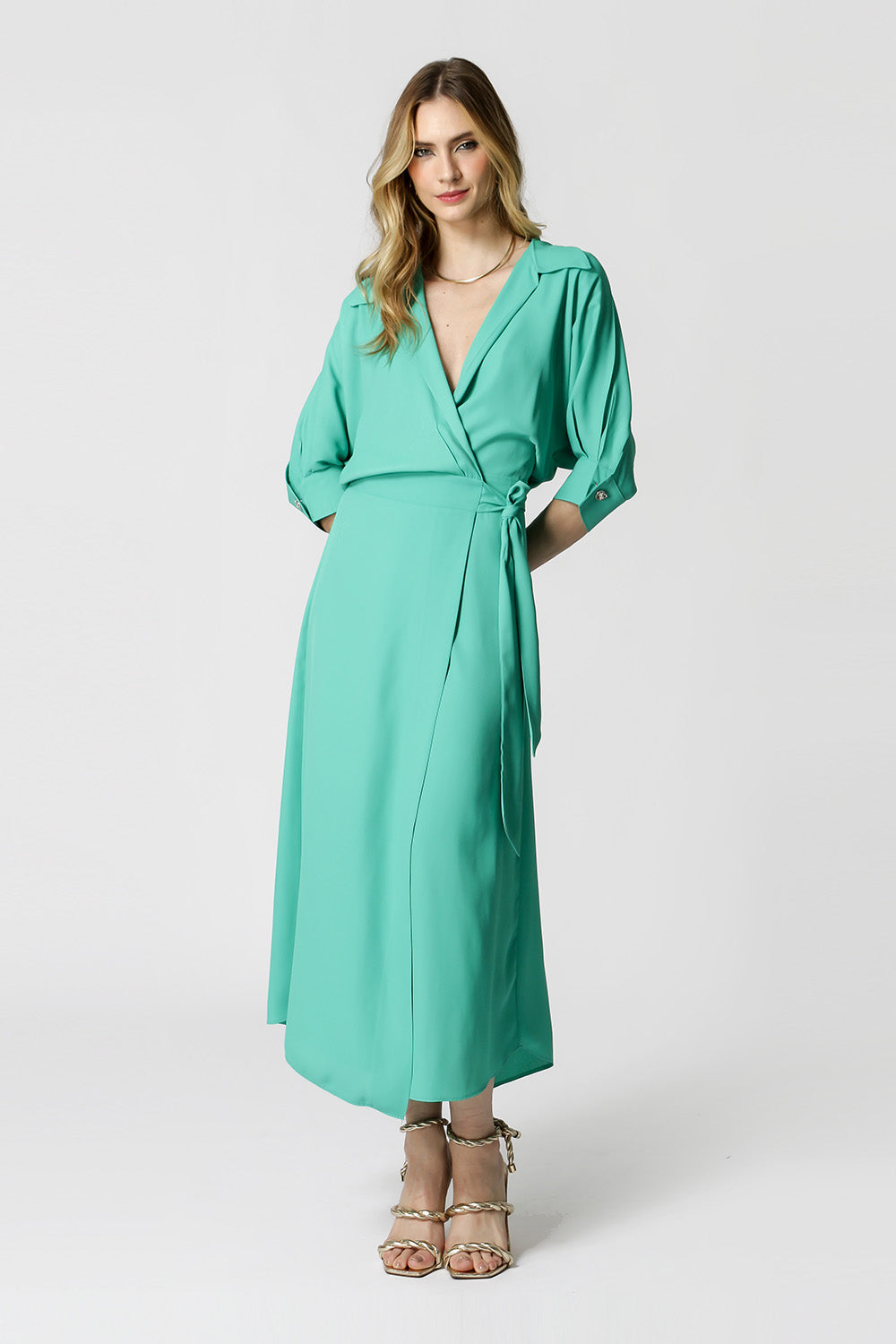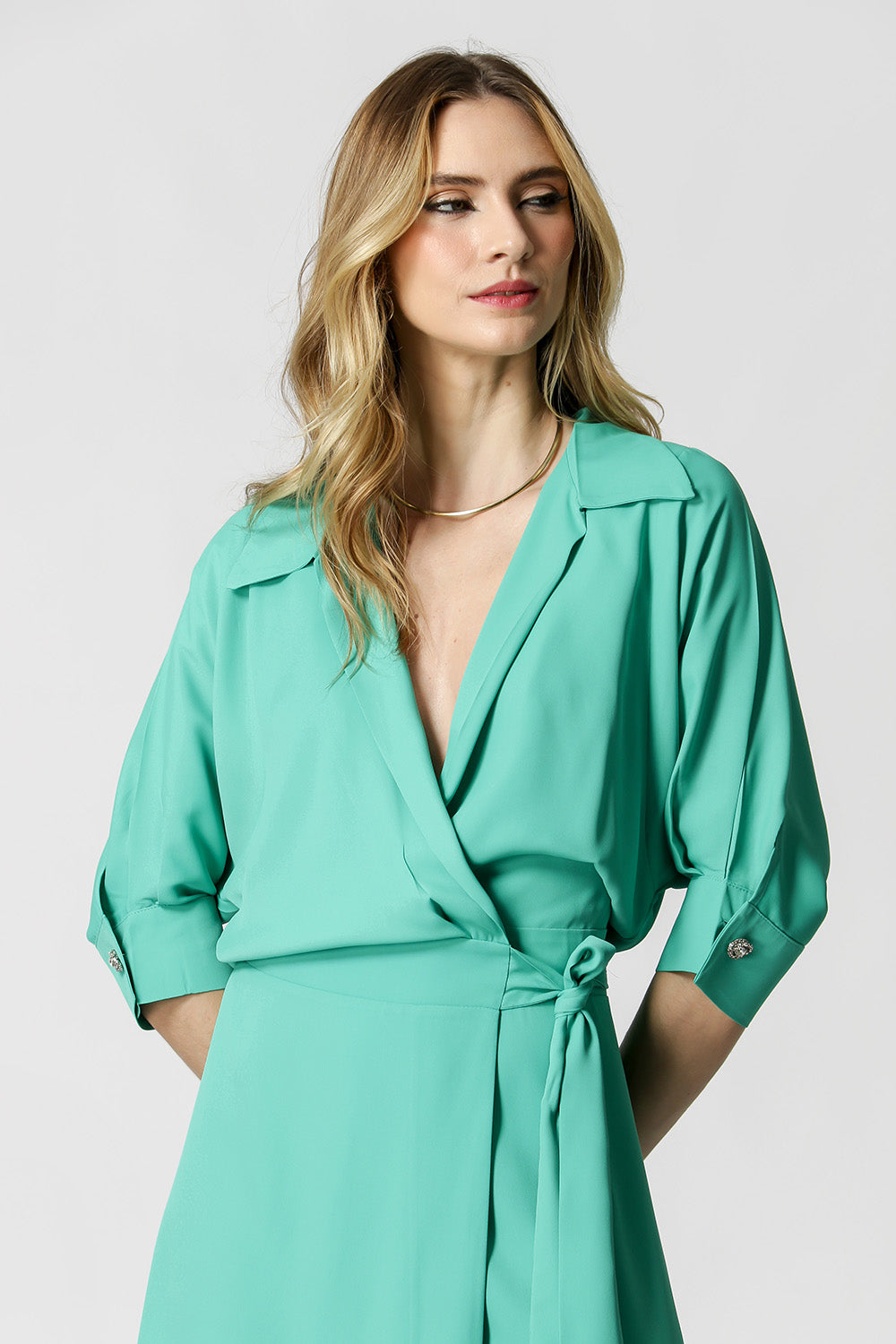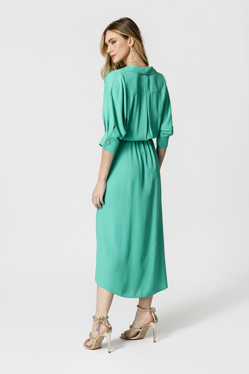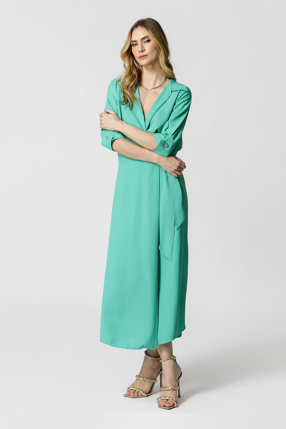 Vestido cachemir con mangas 3/4 y botones de pedrería. Fabricado en tejido crepé ligero y fluido. Modelo elegante, chic y con una gran propuesta para quienes quieren rockear la noche.
