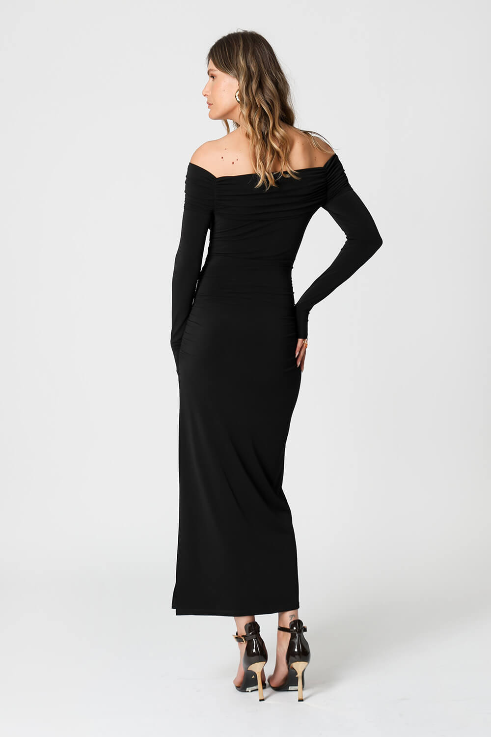 Este vestido ombro a ombro é cheio de estilo e versatilidade, com drapeado entre as fivelas de metal, criando uma abertura sofisticada e moderna. Pode ser usado tanto na frente quanto nas costas, oferecendo diferentes formas de compor o visual. Perfeito para ocasiões especiais ou looks descontraídos com um toque elegante.