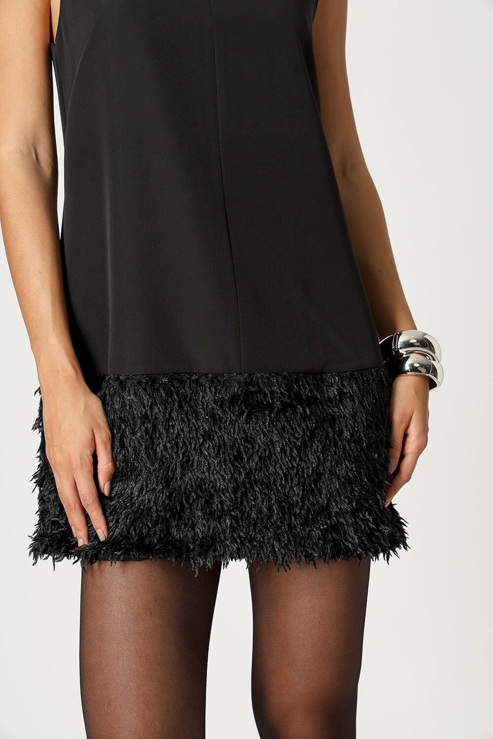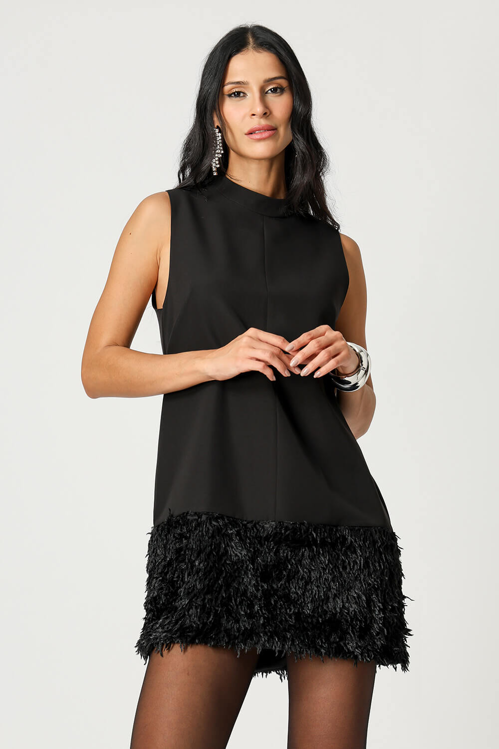 Vestido sin mangas con plumas en el bajo - NEGRO