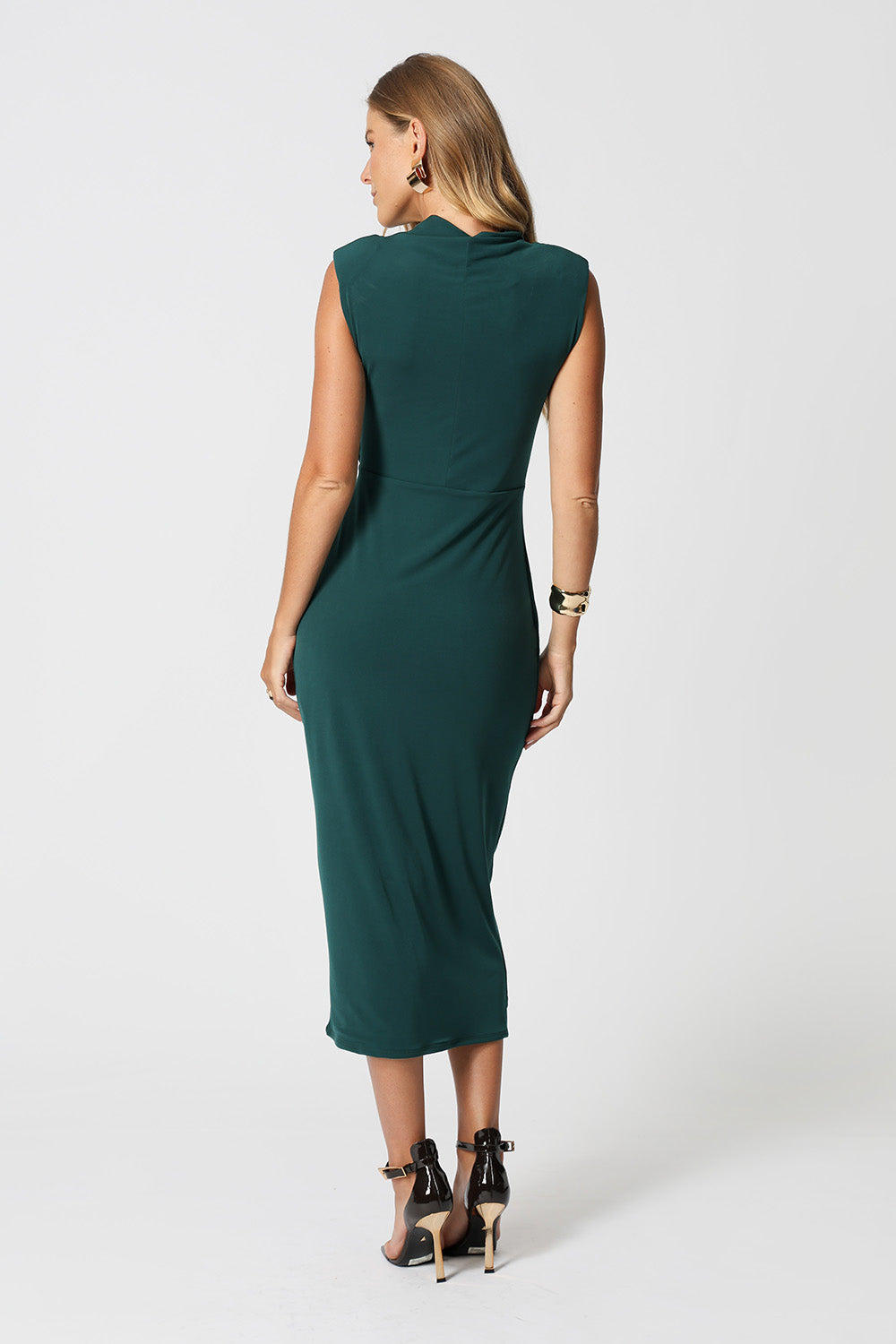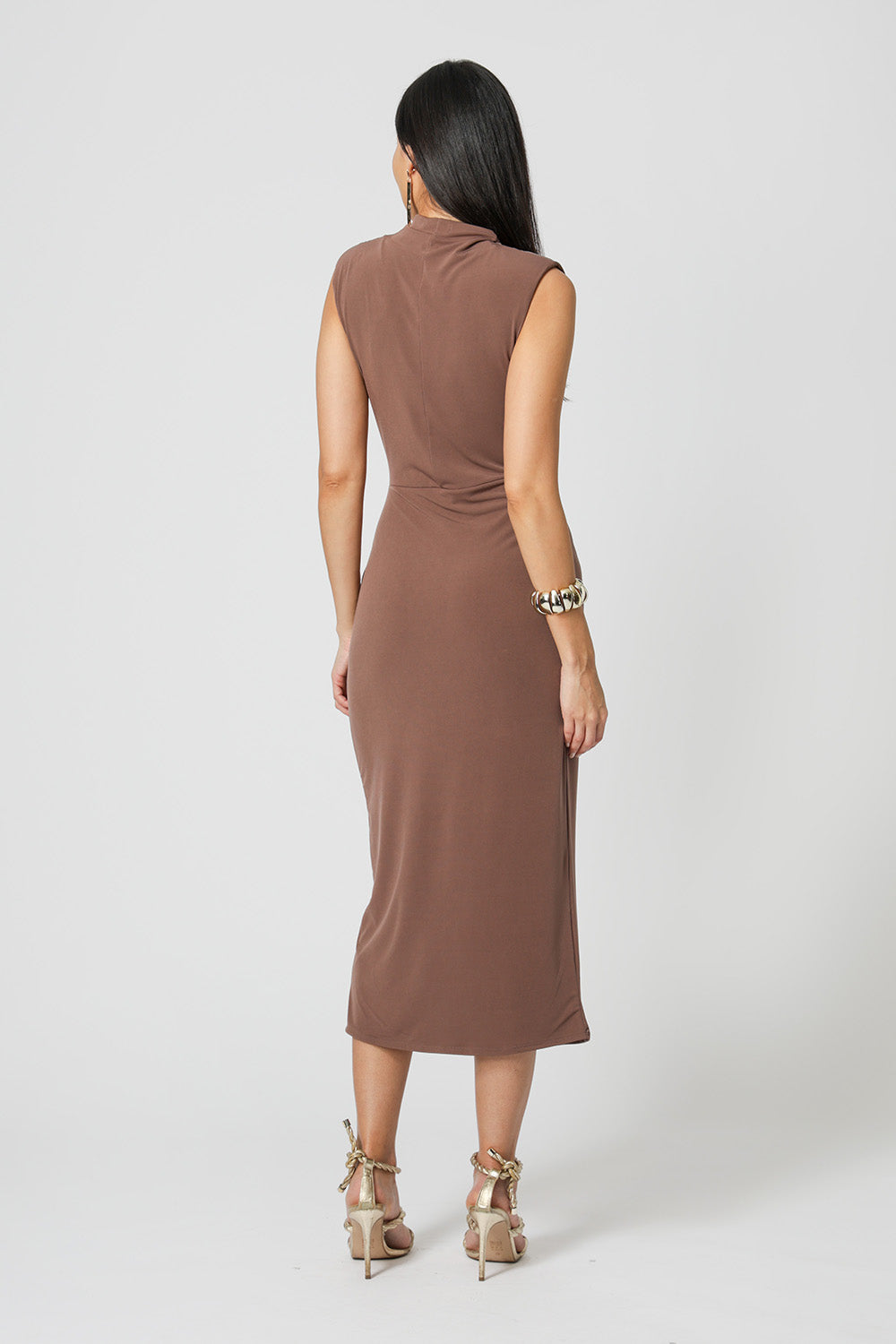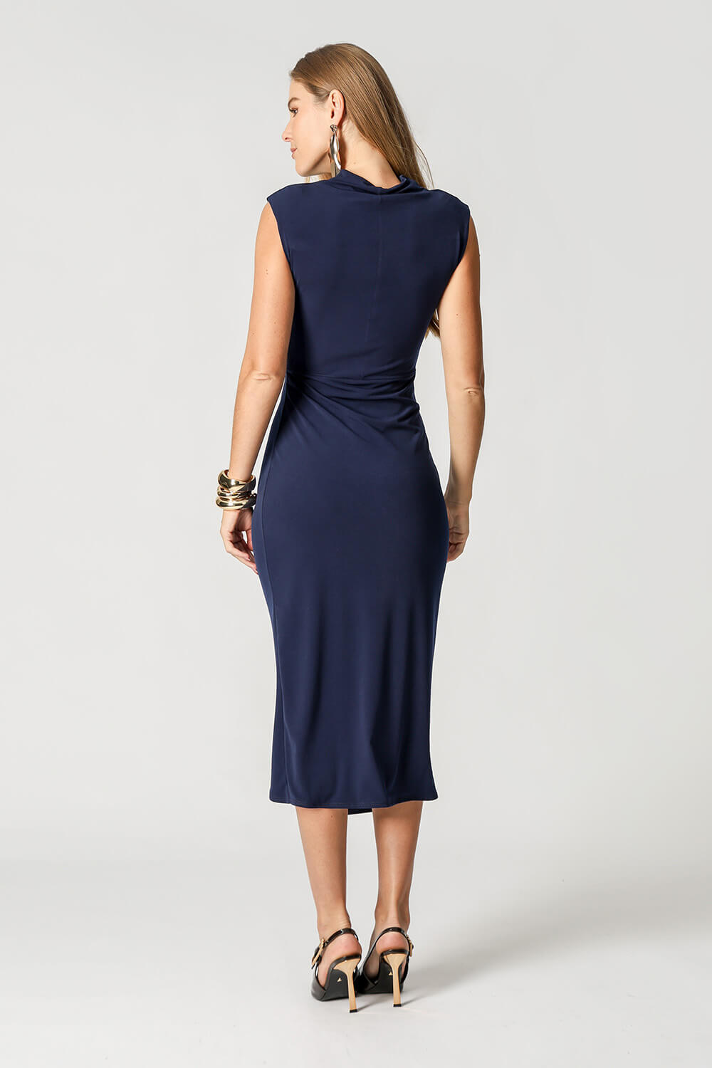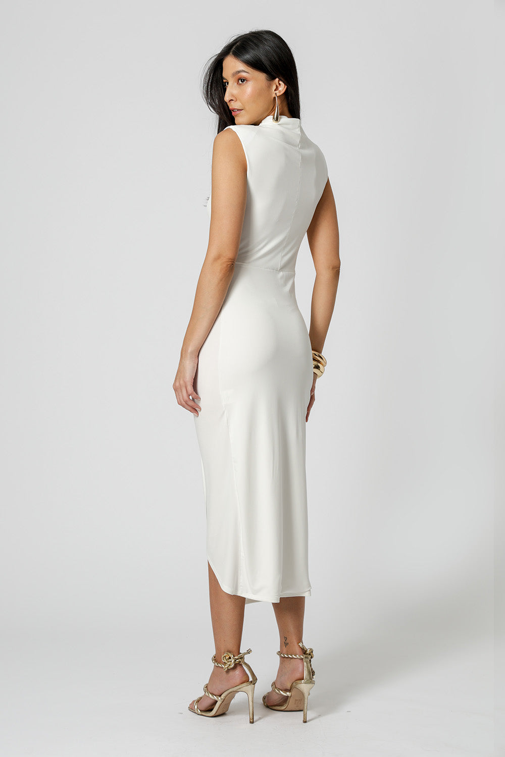 Vestido transpassado com acessório, modelo que valoriza a silhueta com um caimento elegante e fluído. Perfeito para ocasiões especiais ou para um look sofisticado no dia a dia.