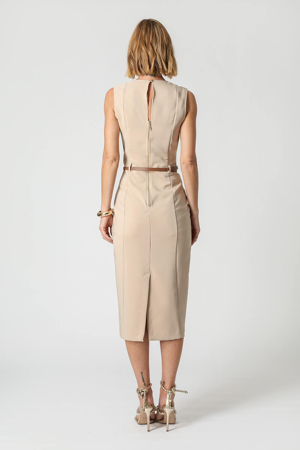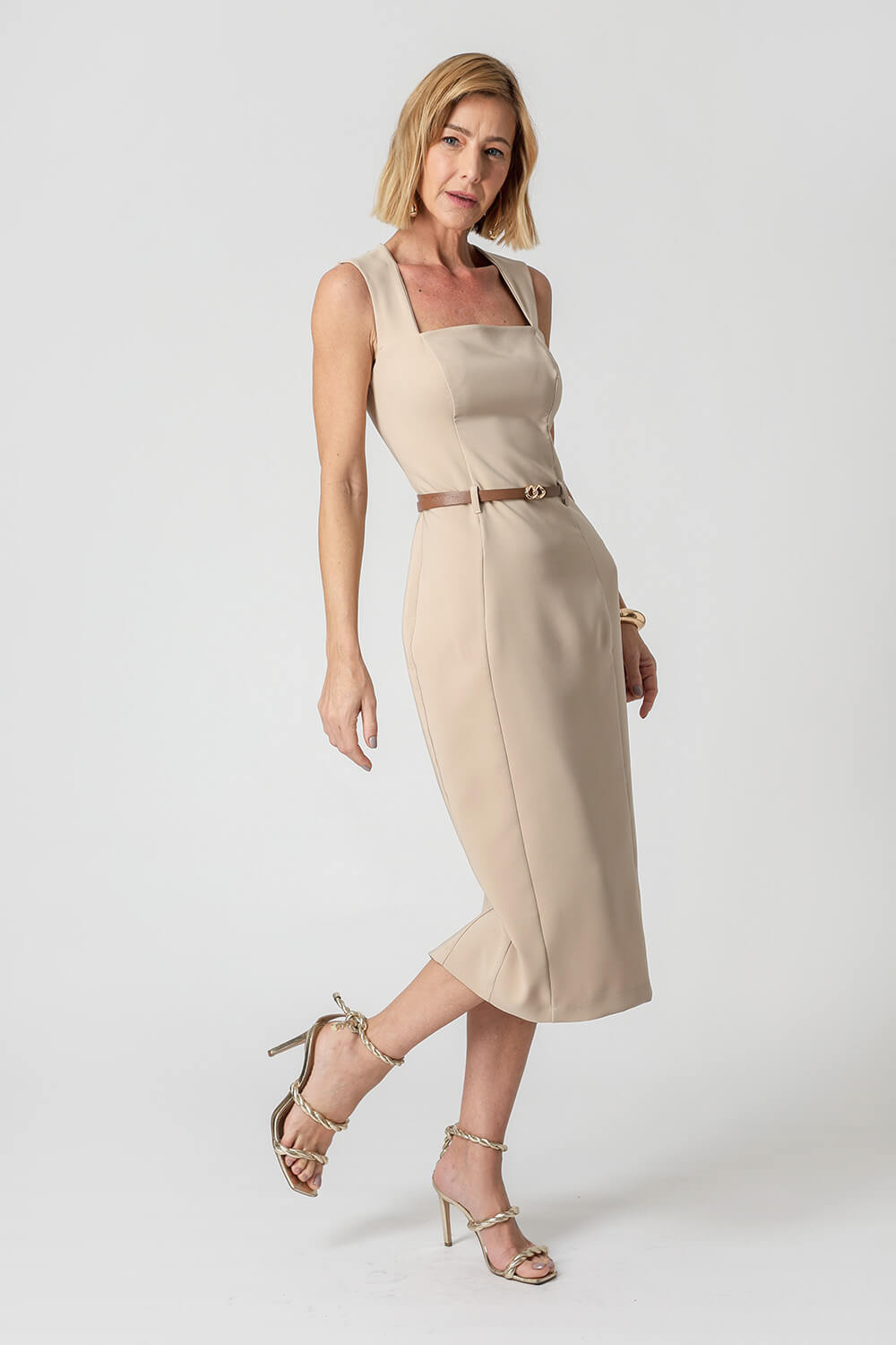 Vestido tubo con cinturón. Un modelo entallado perfecto para un ambiente de trabajo.