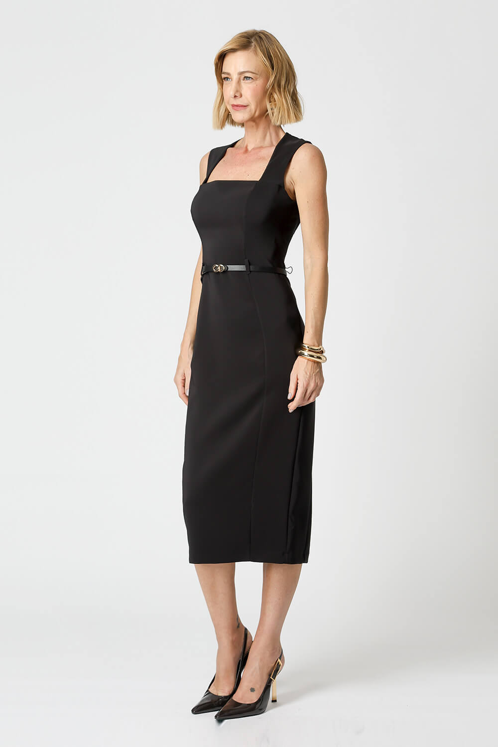 Vestido tubo con cinturón. Un modelo entallado perfecto para un ambiente de trabajo.