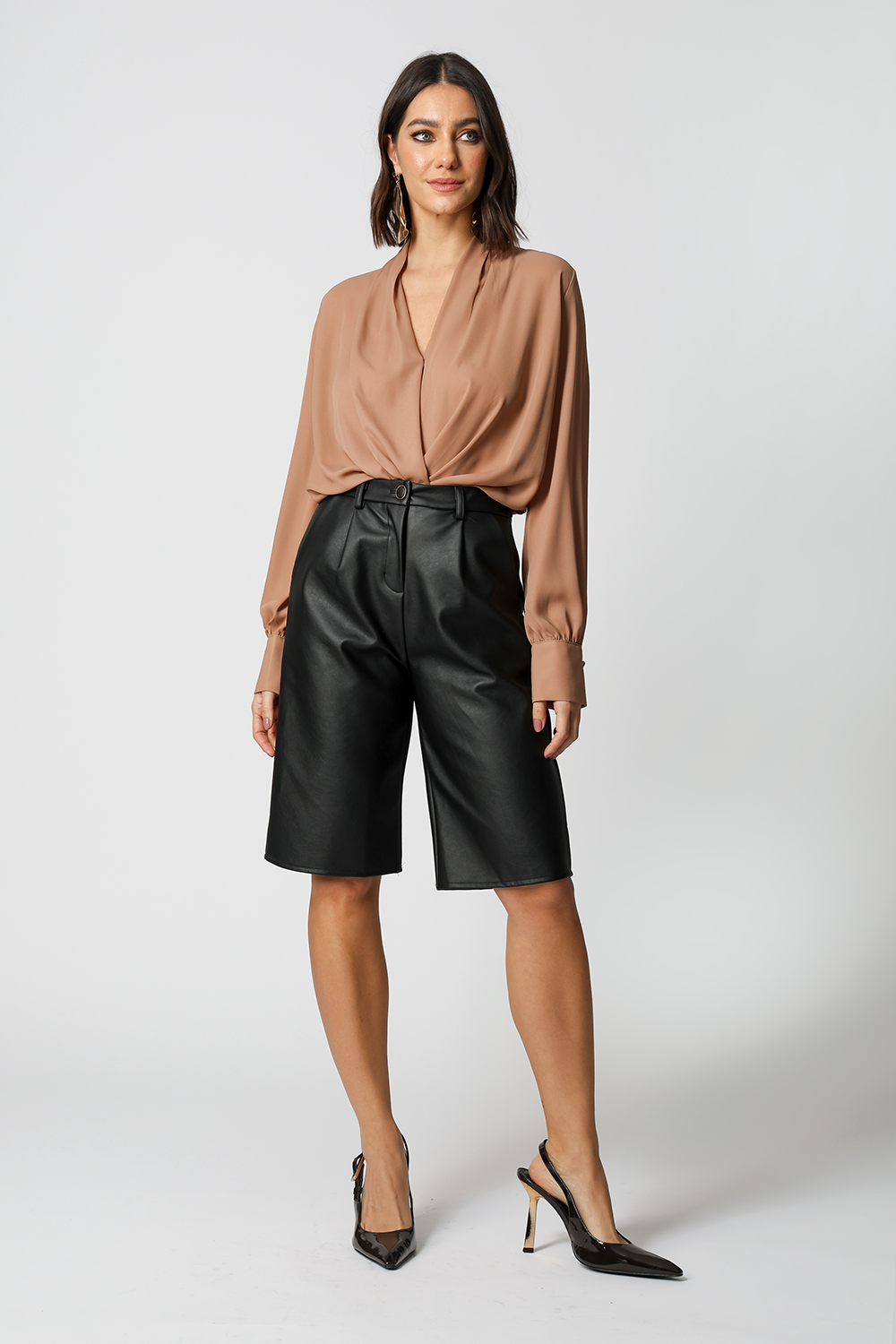 Bermuda com pences modelo que garante um caimento perfeito. Os bolsos laterais adicionam um toque prático e despojado, ideal para quem busca conforto sem abrir mão da elegância.