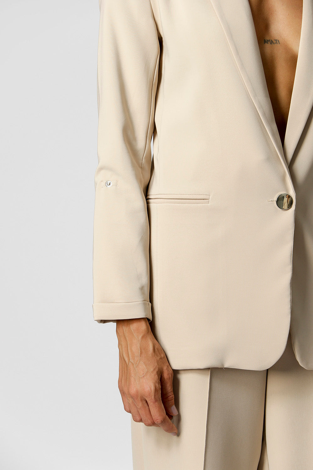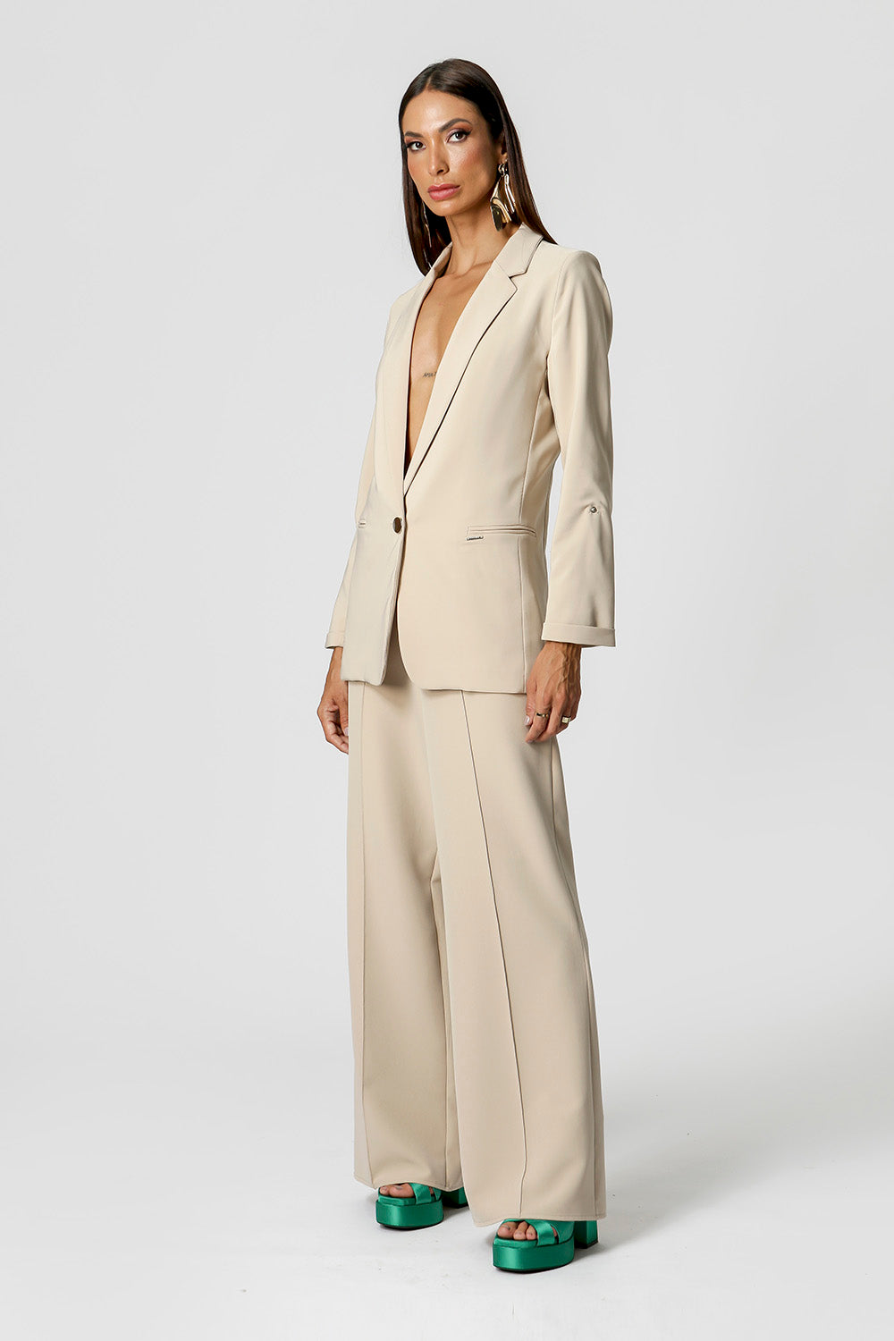 Blazer de alfaiataria com shape longline, com detalhe de martingale e com forro estampado.