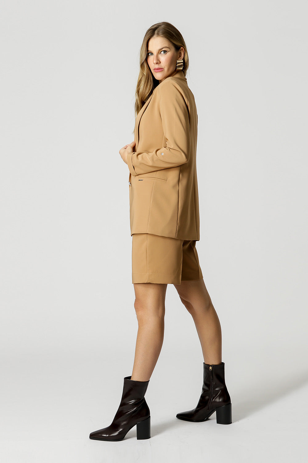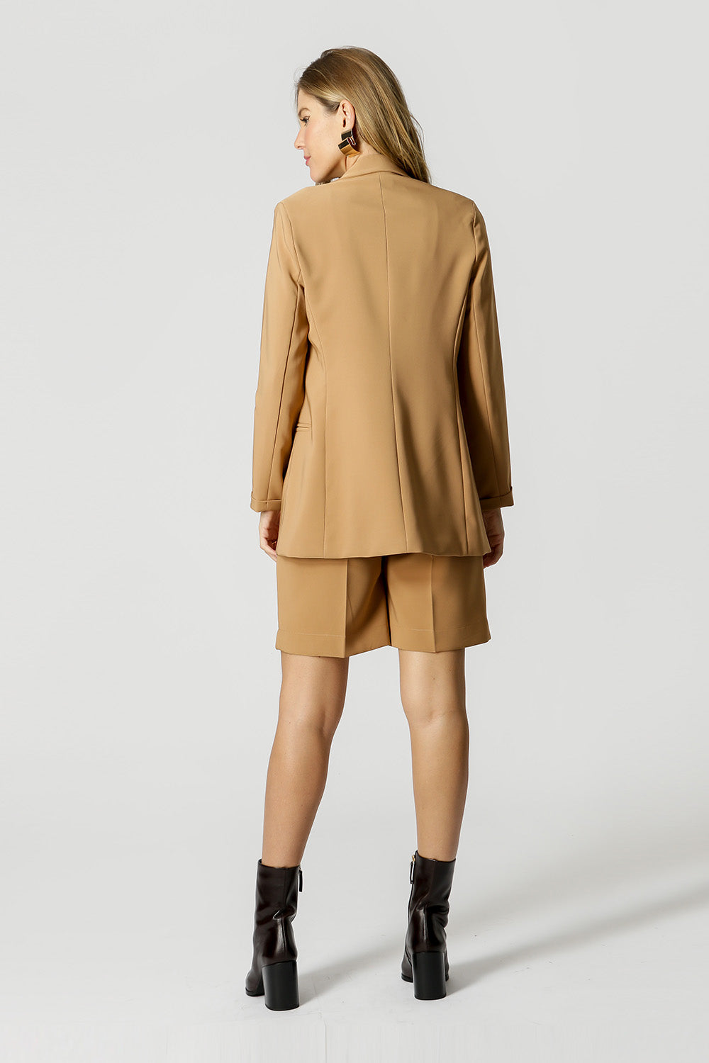 Blazer de alfaiataria com shape longline, com detalhe de martingale e com forro estampado.